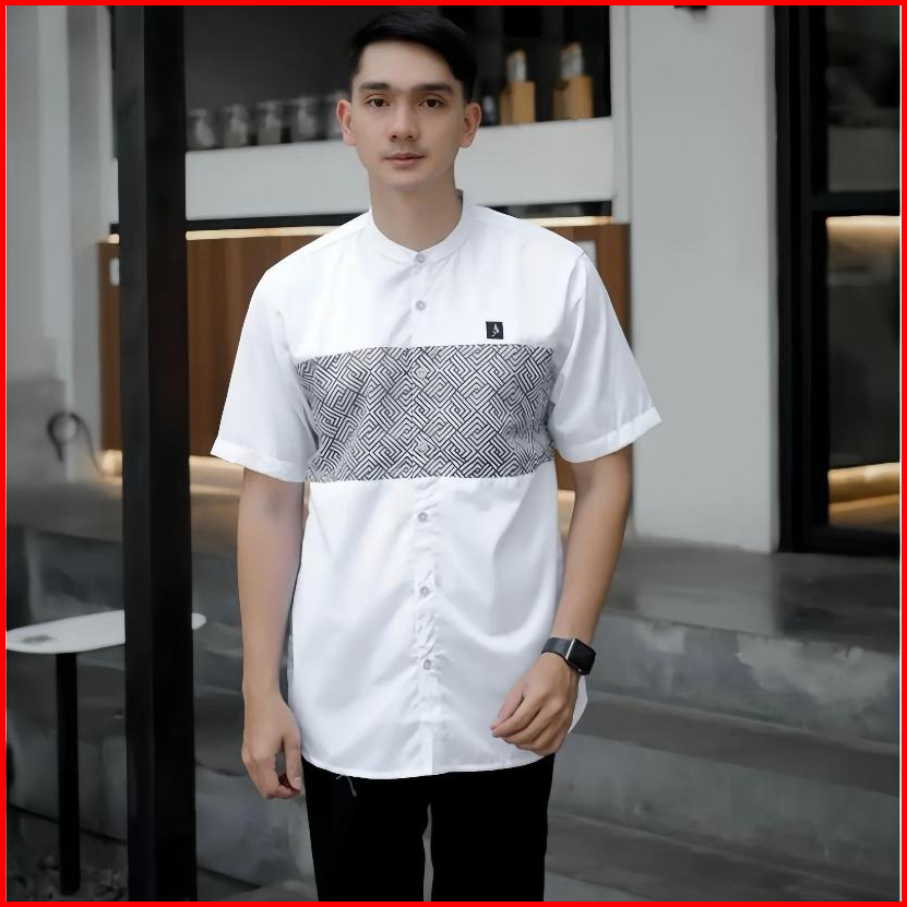 Arsa - Baju Koko Excellent Pria Lengan Pendek Baju Koko Kurta Pakistan Kombinasi Simpel Elegan