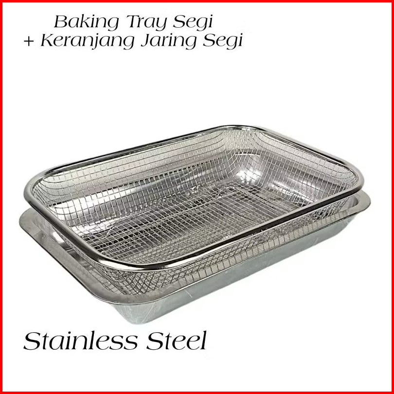 Promo 1set Nampan Saringan Stainless Tirisan Minyak Food Drying Tray Keranjang Tinggi Stainless Buah Gorengan Sayur Namp