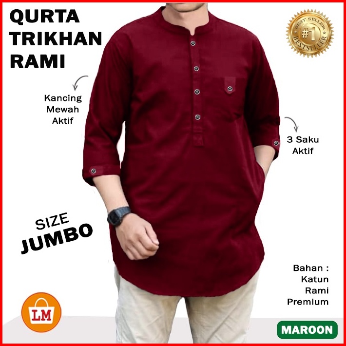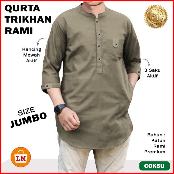Baju Koko Qurta Trikhan Rami Jumbo Bahan Katun Rami M - Xxxl Terbaru Termurah Terlaris Lms 27658 27660 27662 27664 27666