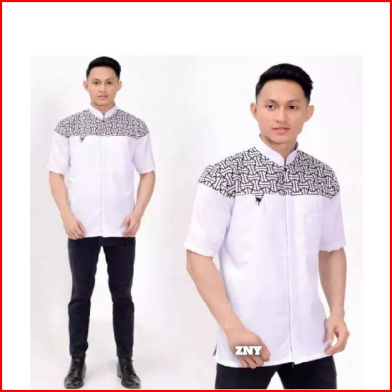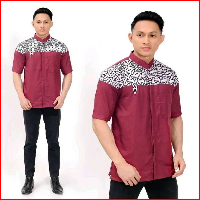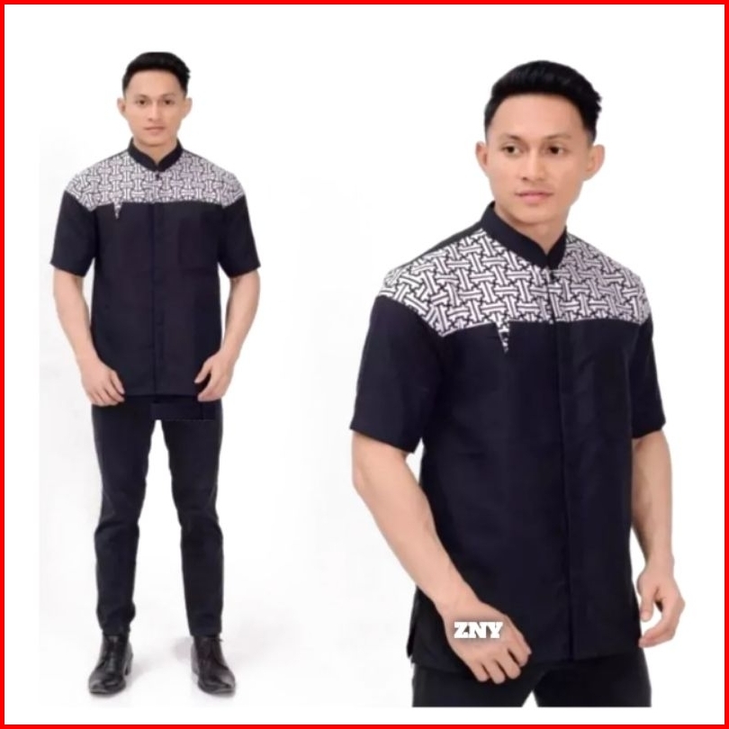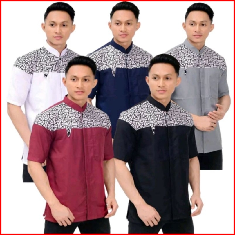 Baju Koko Pria Dewasa Lengan Pendek Kombinasi Batik Bahan Vitto Signature Lembut Adem