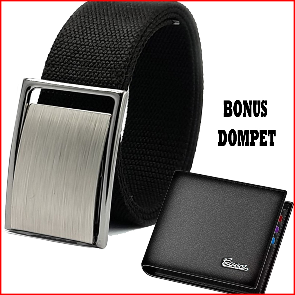 Bonus Dompet Kulit Gesper Ikat Pinggang Katun Tebal Model Silet Formal Pria Dan Wanita Gesper Nylon Panjang 120cm Ikat P