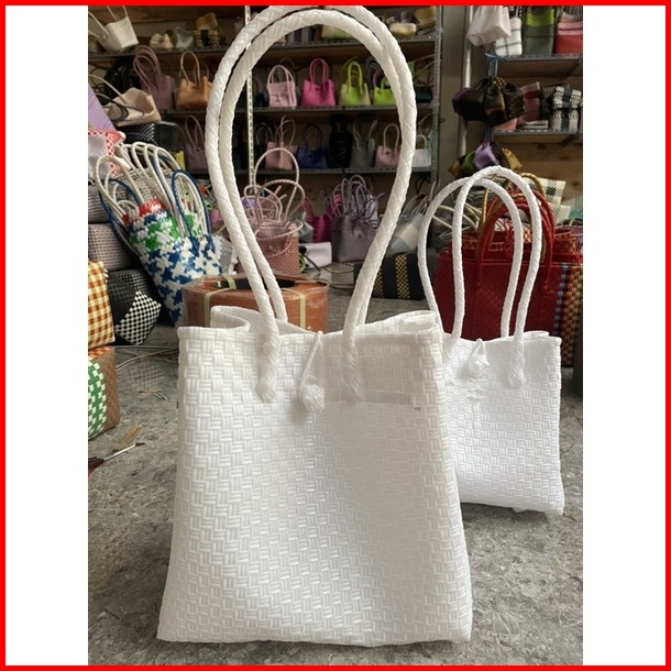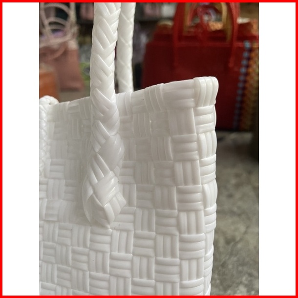 Ready Stok - Tas Anyaman Jali Putih Polos Premium