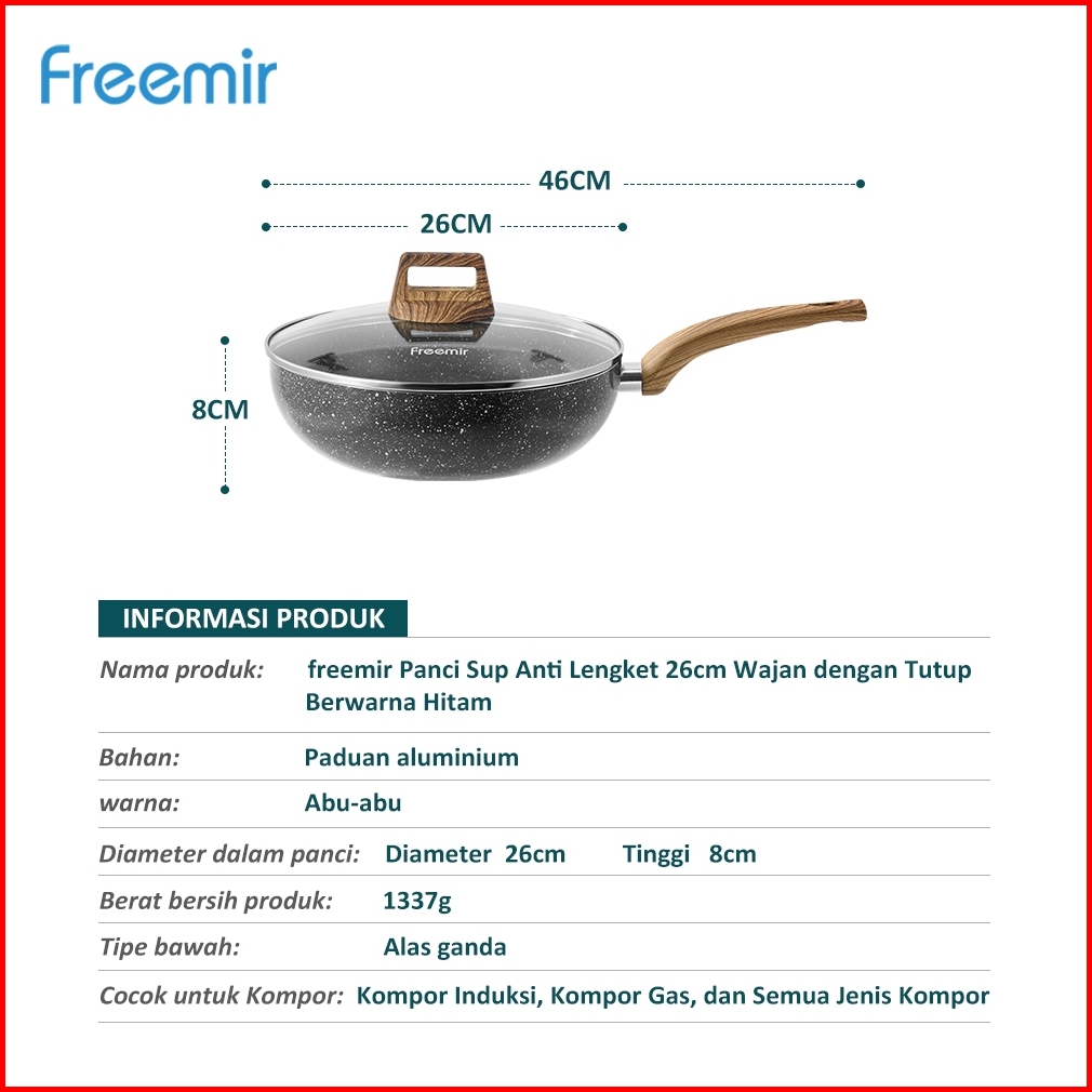 Mall Freemir Wajan Anti Lengket 26cm Hitam Wajan Panci Masak Penggorengan Pemanasan Cepat Bagian Bawah Komposit Dengan T