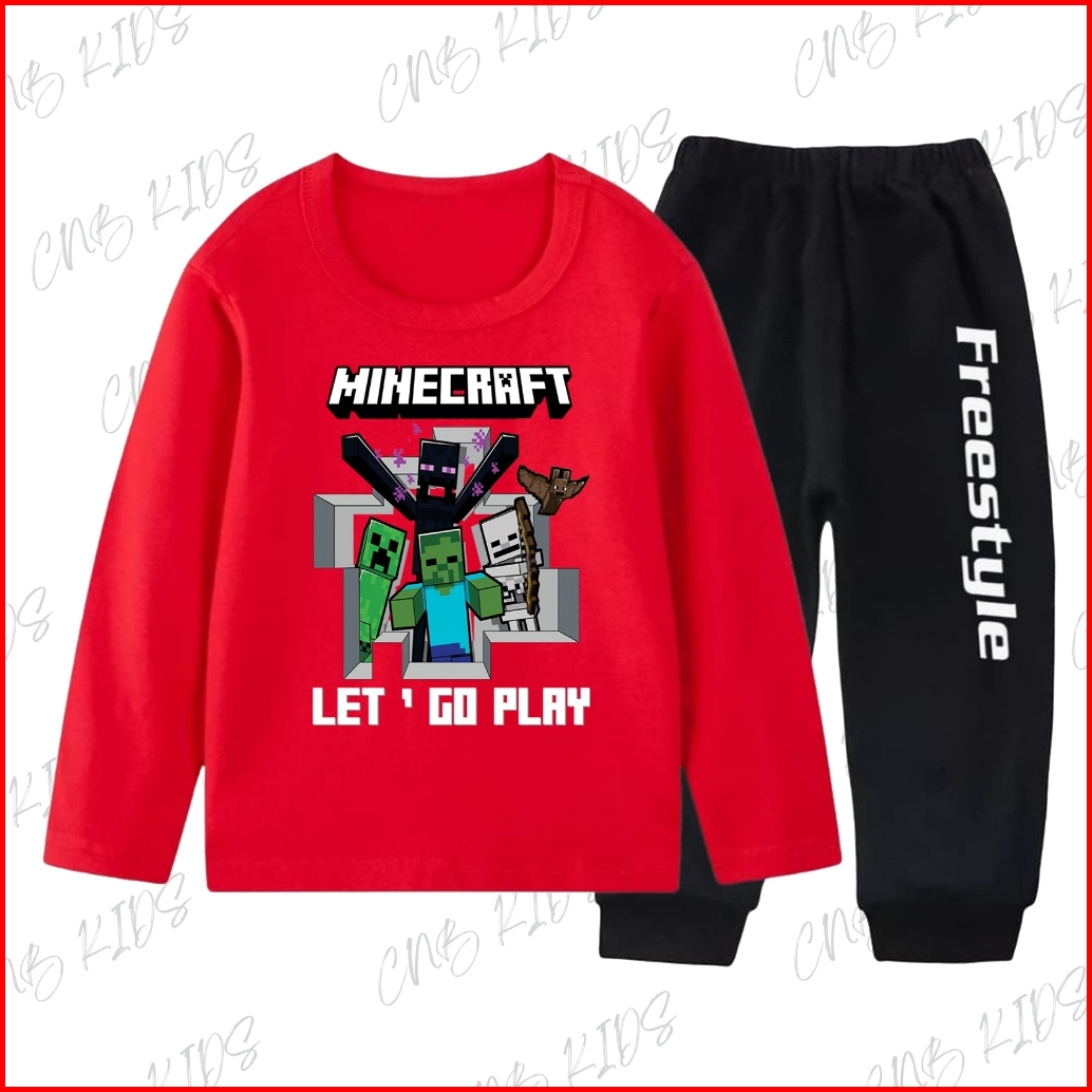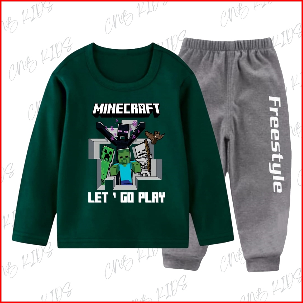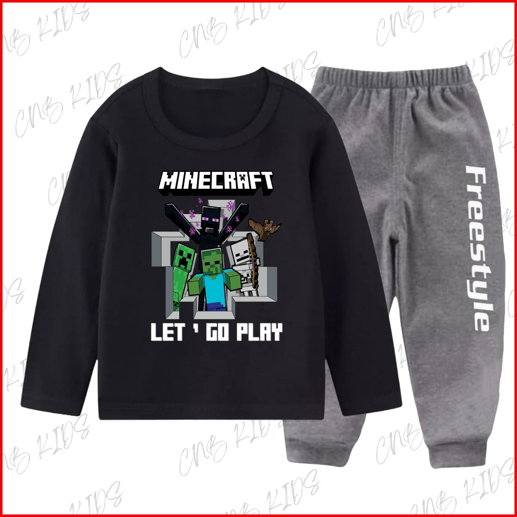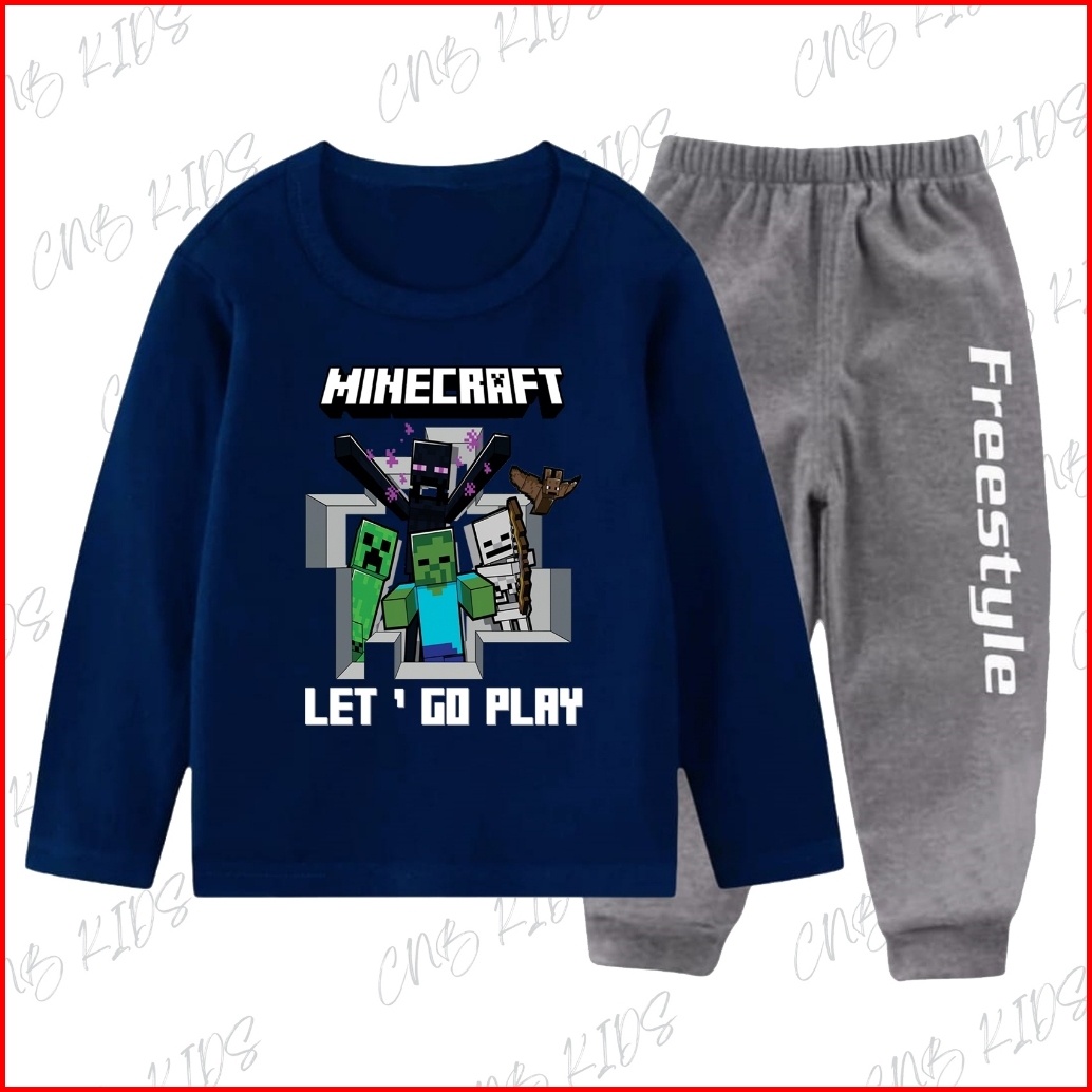 Baju Kaos Setelan Lengan Panjang Anak Laki Laki Motif Dtf Minecraft 1 Usia 1-15 Tahun Cnb Kids