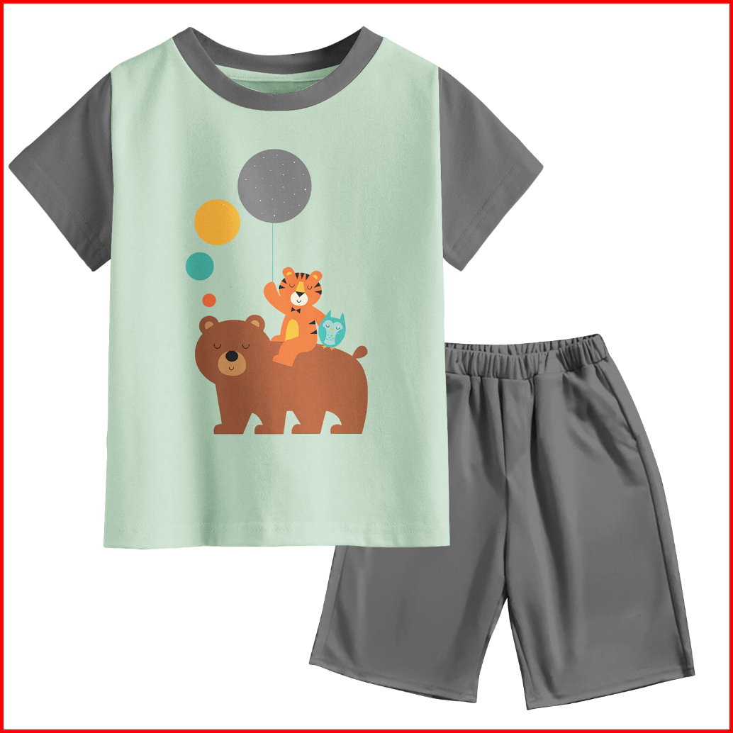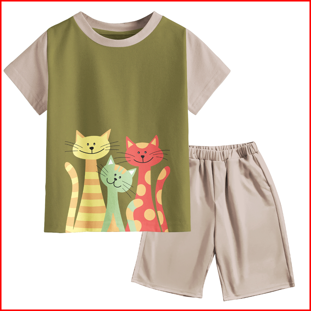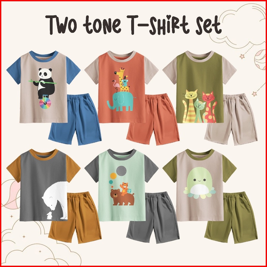 Setelan Anak Twotone Motif Lengan Pendek Unisex Laki Laki Perempuan Terbaru