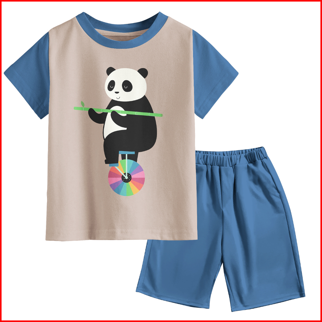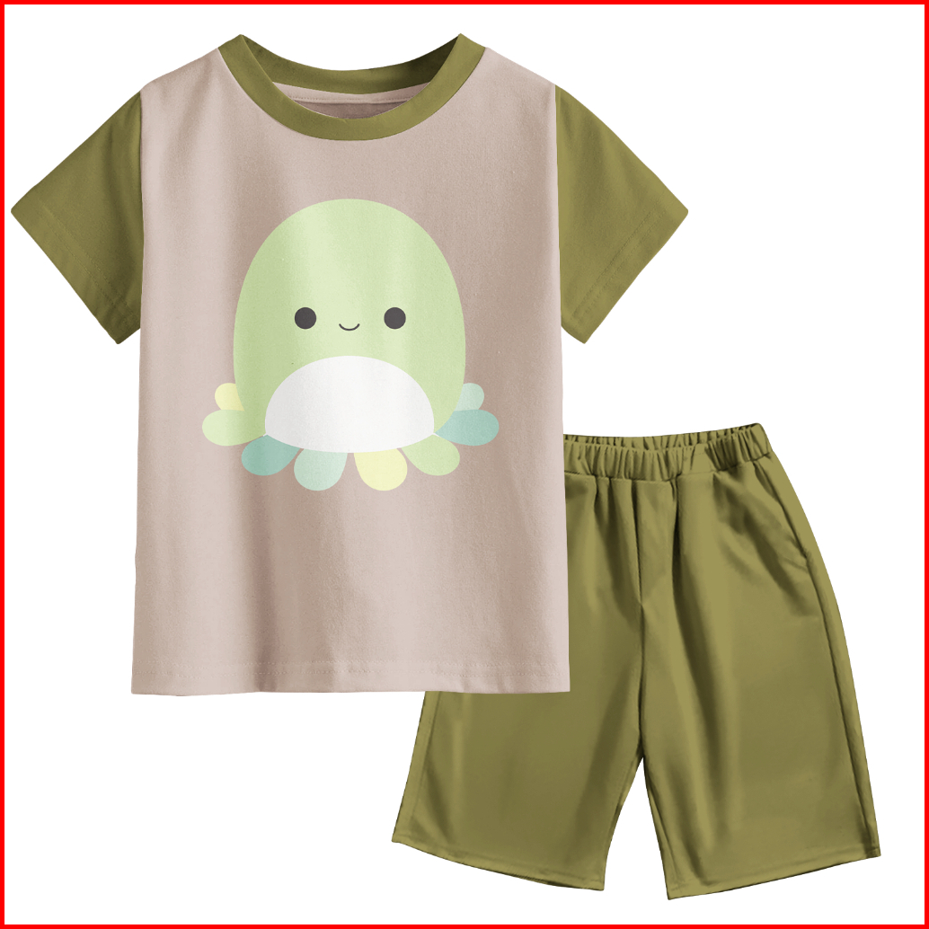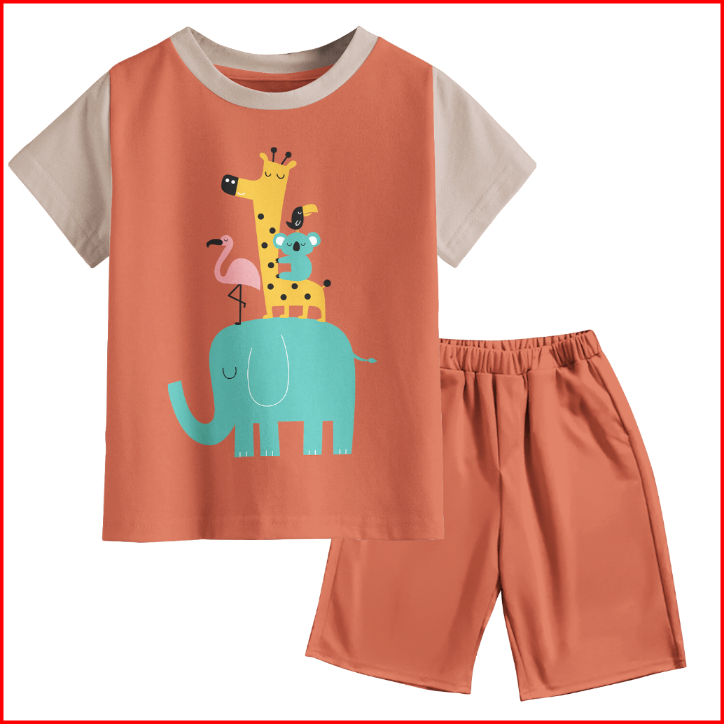 Setelan Anak Twotone Motif Lengan Pendek Unisex Laki Laki Perempuan Terbaru