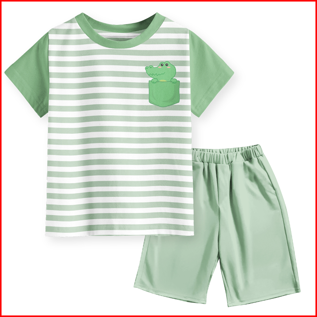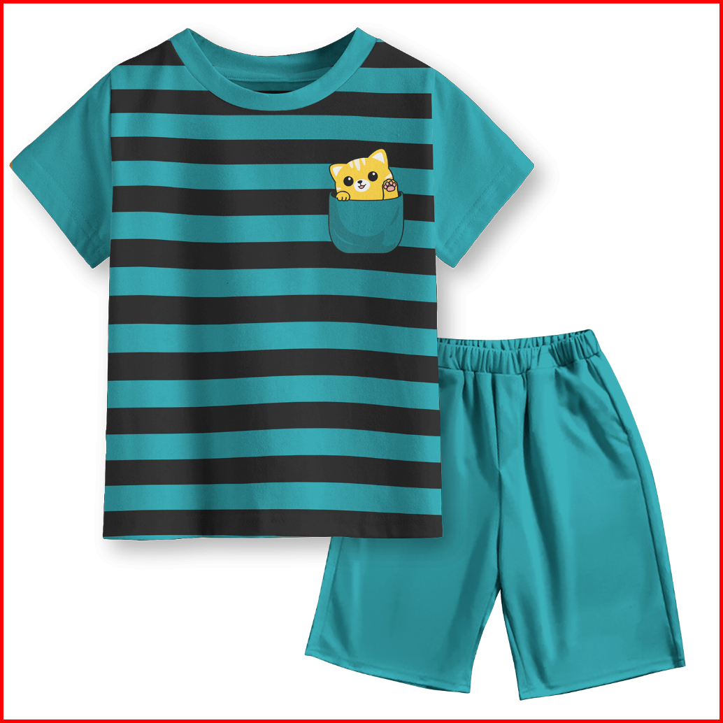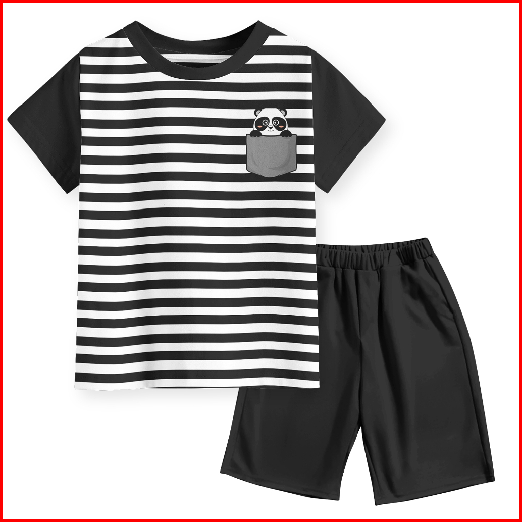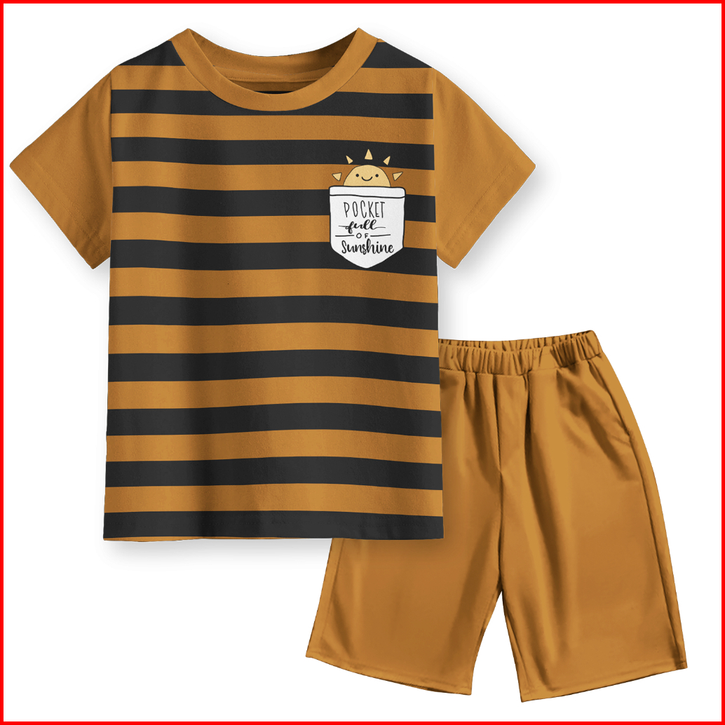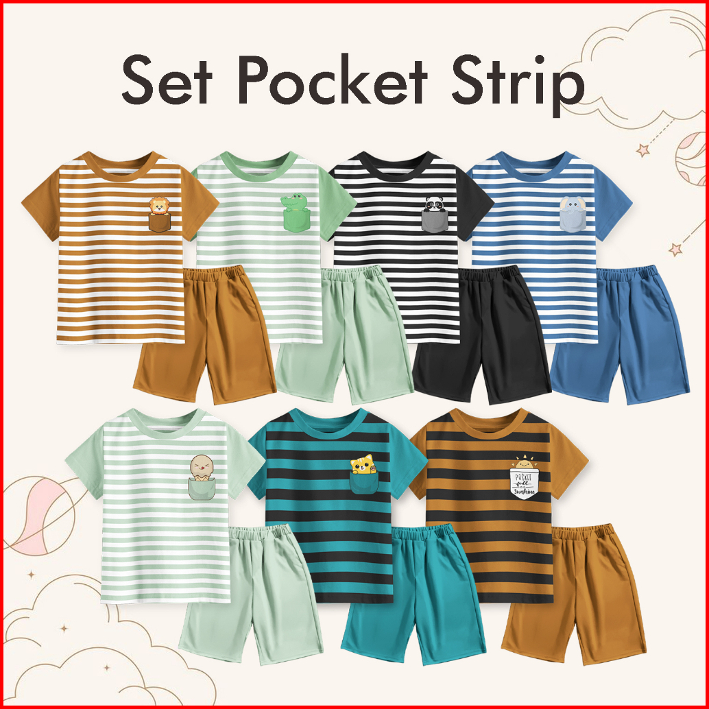 Setelan Kaos Motif Pocket Salur Strip Anak Laki-laki Dan Perempuan Unisex