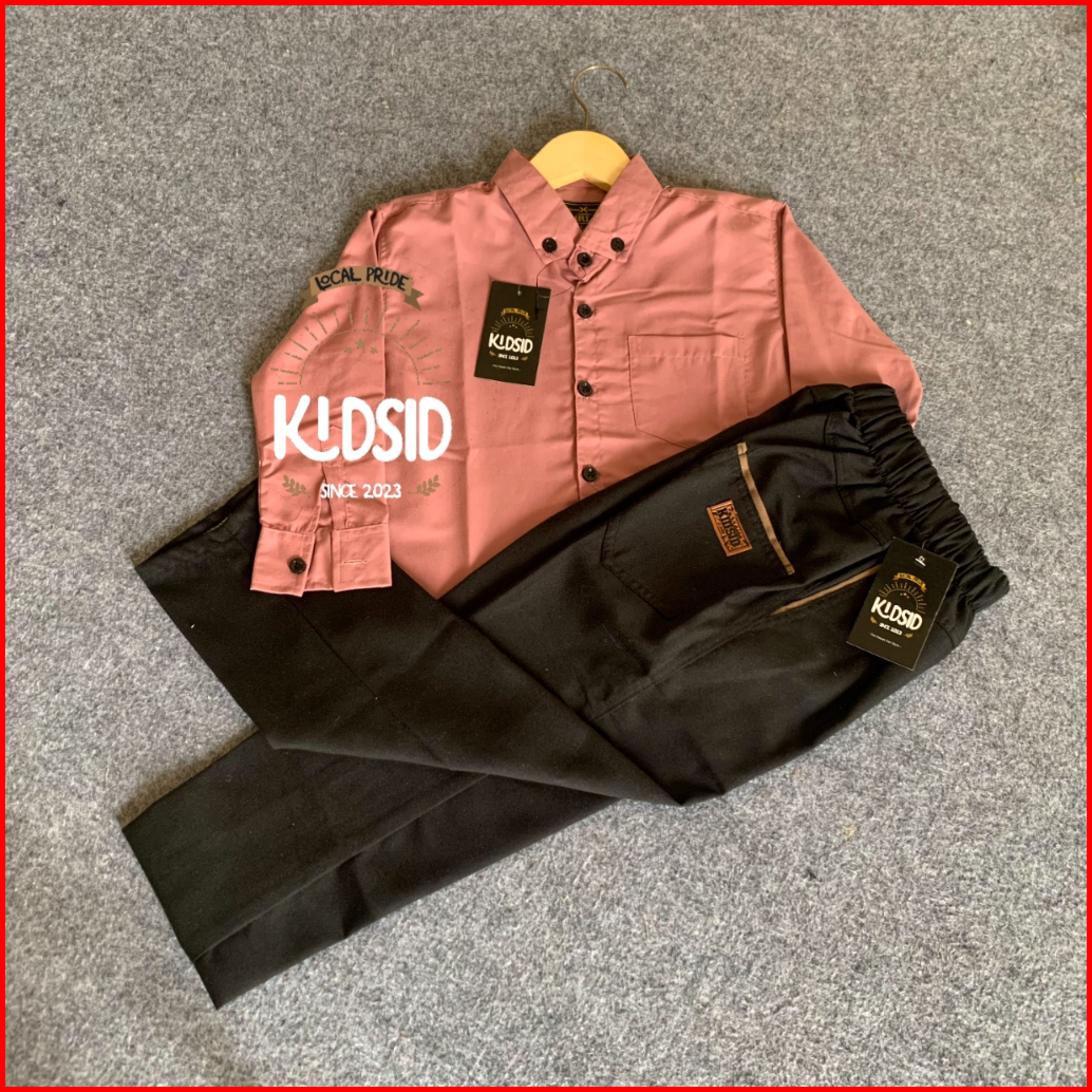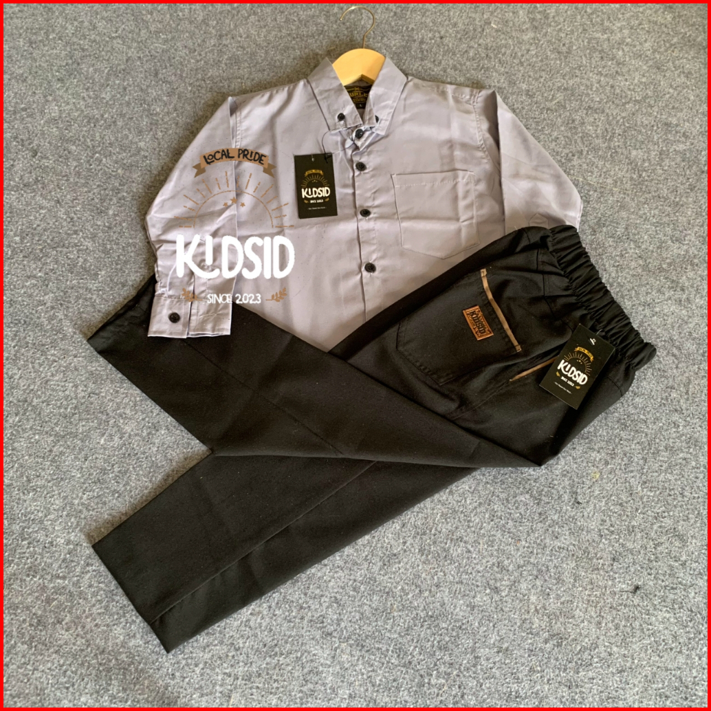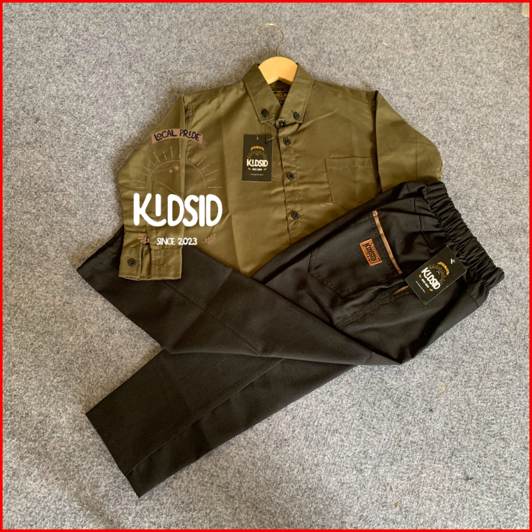Setelan Kemeja Lengan Panjang Celana Chino Anak Laki -laki Umur 1-13 Tahun - Setelan Kemeja Anak Warna Biru Mudah - Baju