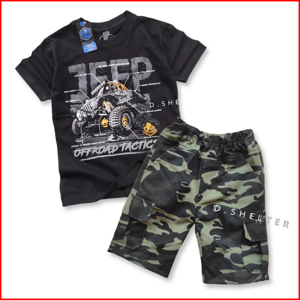 Setelan Anak Laki-laki 3 Sampai 10 Tahun Dshelter Stelan Kaos Dan Celana Loreng
