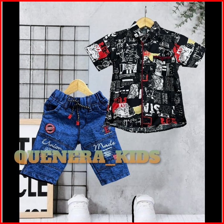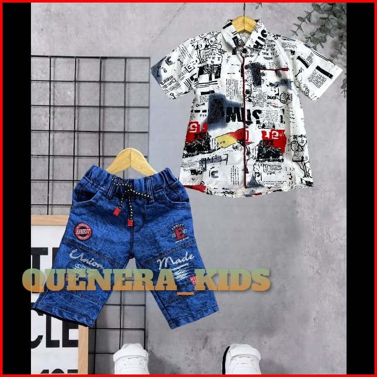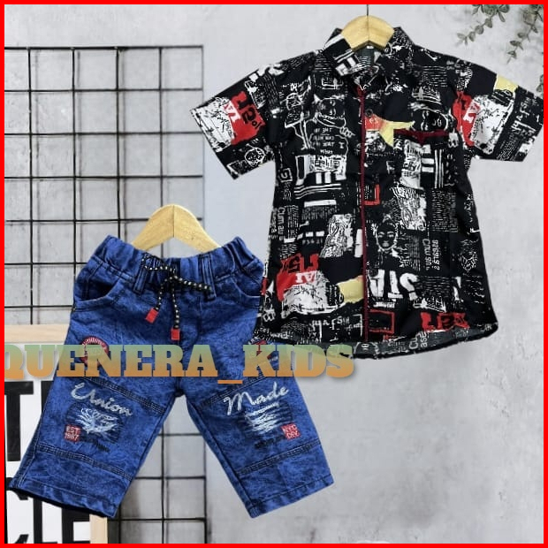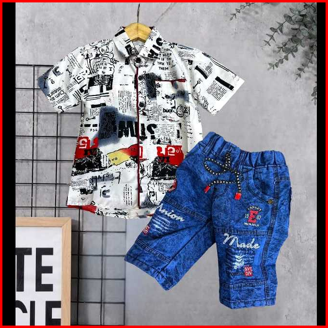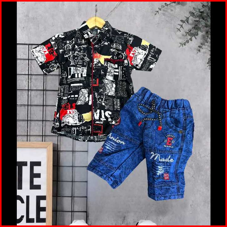 Setelan Jeans Pendek Sobek Kemeja Kekinian Anak Laki Laki Usia 1-12 Tahun Motif Desain Terbaru