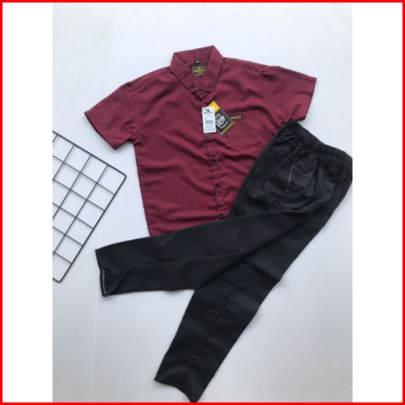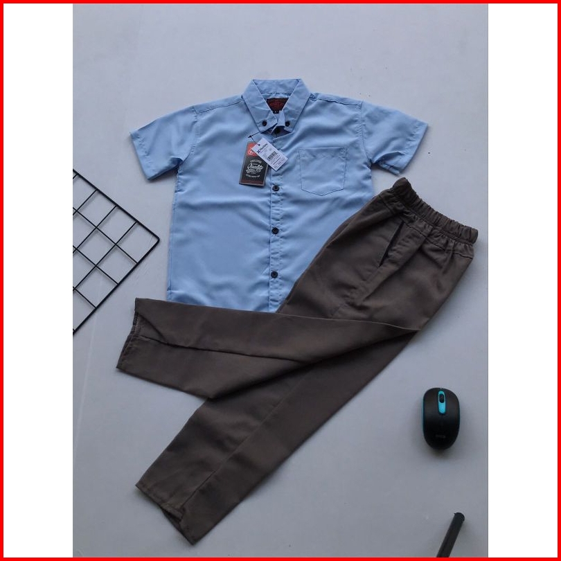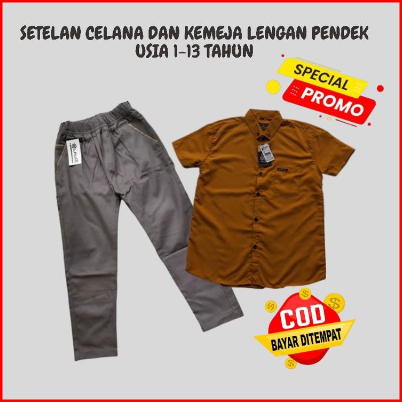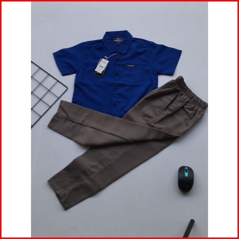 Setelan Kemeja Anak 1-13 Tahun Kemeja Lengan Pendek Anak Premium Celana Chino Set Atasan Baju Anak Kemeja Pendek Celana