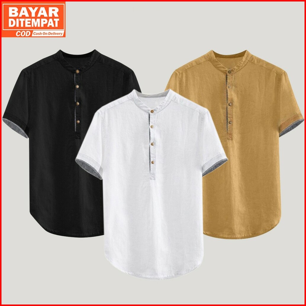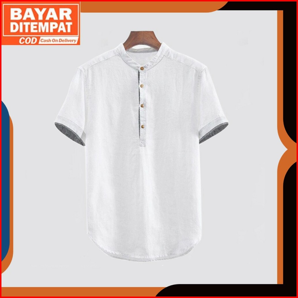 - Kemeja Koko Pria Lengan Pendek Warna Putih Polos Bahan Katun Berkualitas Hanafi