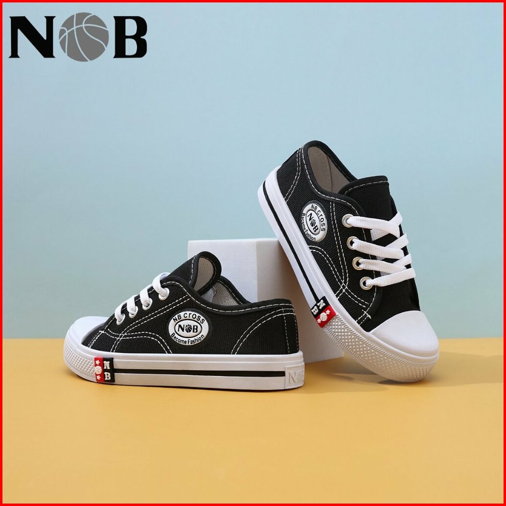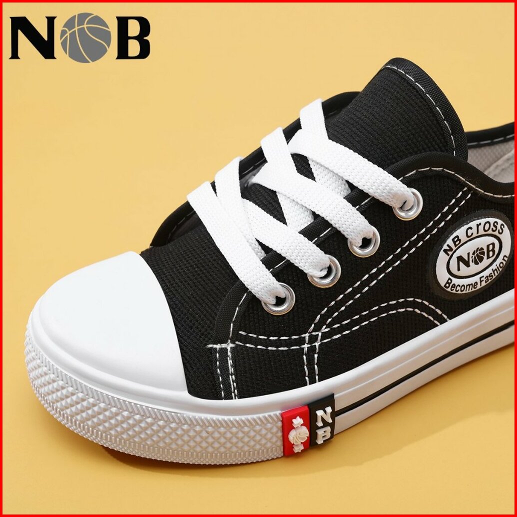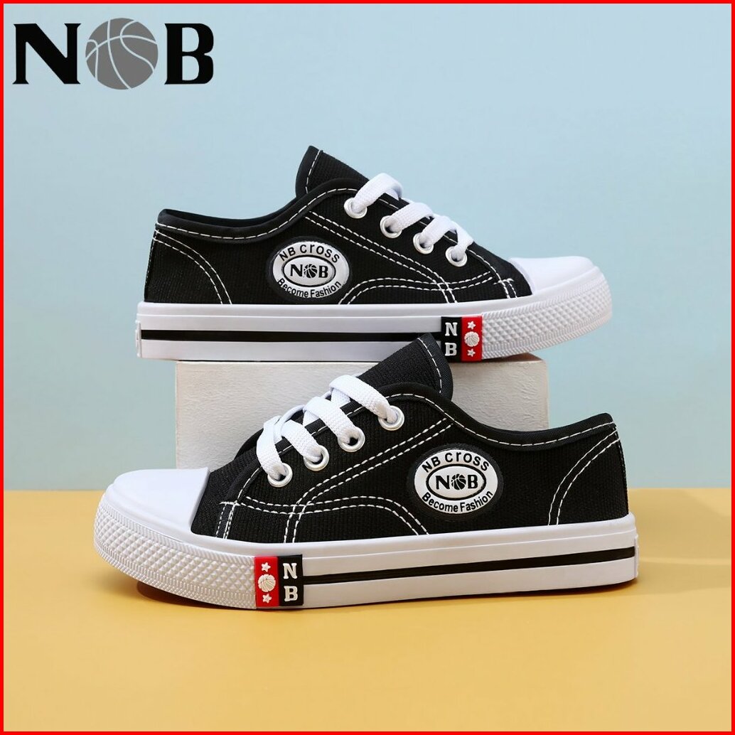 N Bola B Sepatu Sekolah Formal Tali Bahan Canvas Sneakers Sekolah Hitam Cewek Cowok