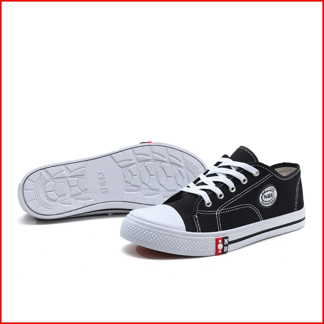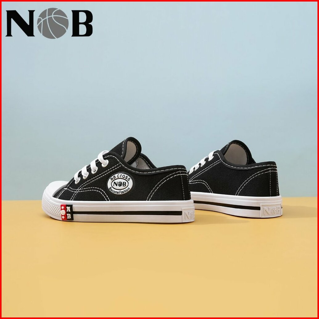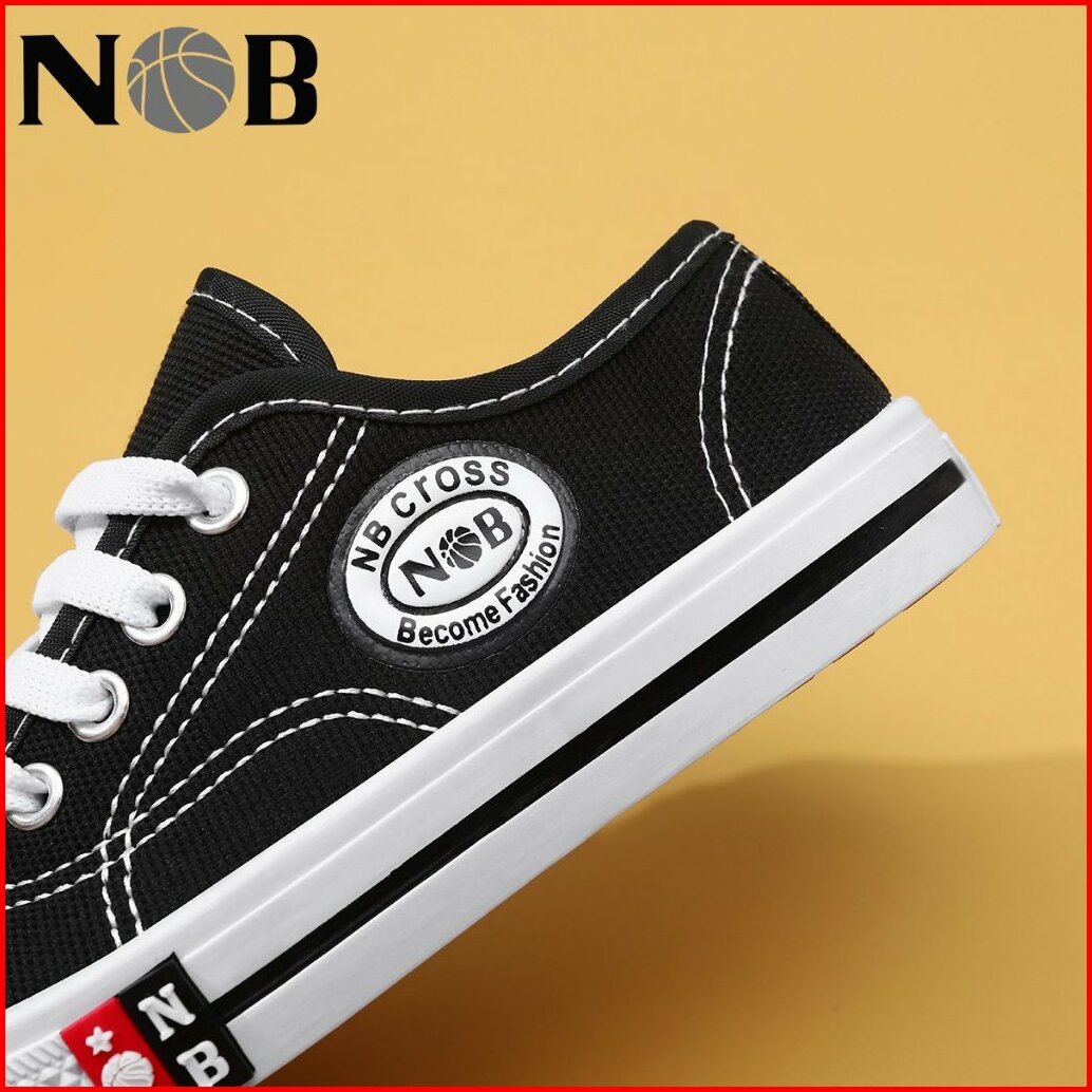 N Bola B Sepatu Sekolah Formal Tali Bahan Canvas Sneakers Sekolah Hitam Cewek Cowok