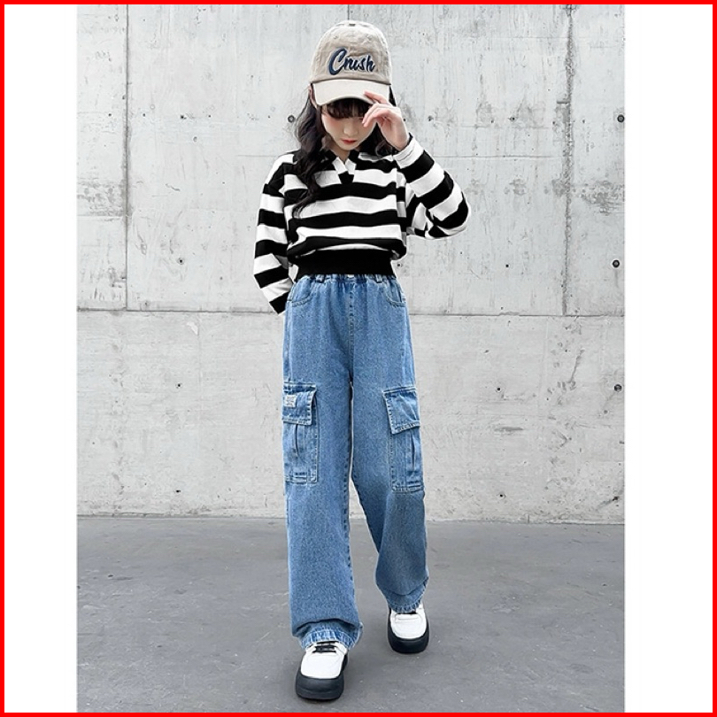 Celana Kulot Cargo Saku Jeans Anak Usia 3-13thn Dewasa Bb 50-70