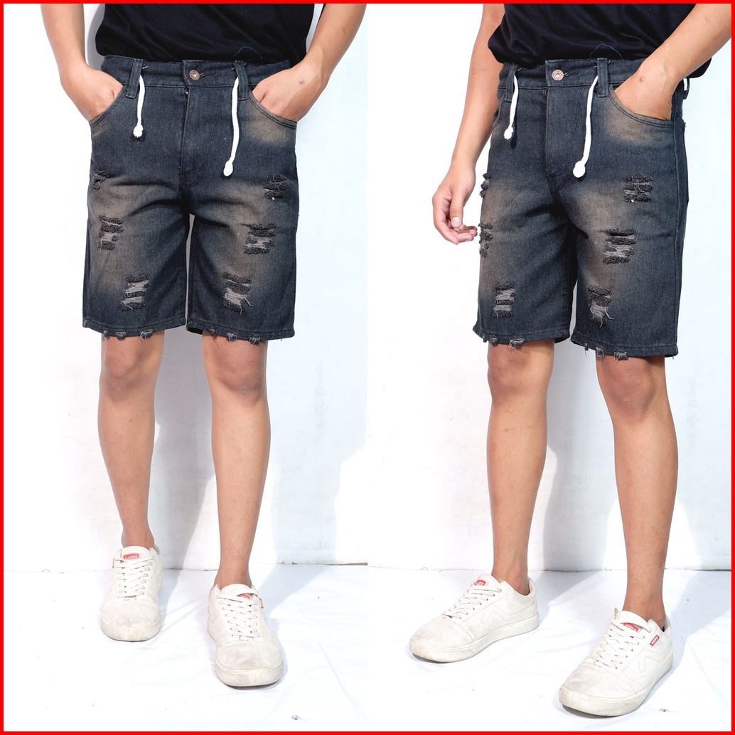 Celana Jeans Pendek Sobek Pria Wisker Jeans Pendek Ripped Robek Pria Premium Distro New