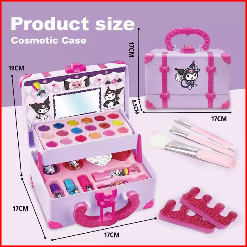Ready - Mainan Anak Perempuan Dandan Rias Kosmetik Cosmetic Make Up Box Koper Sanrio Kuromi Melodi Momo Girl Pretend And