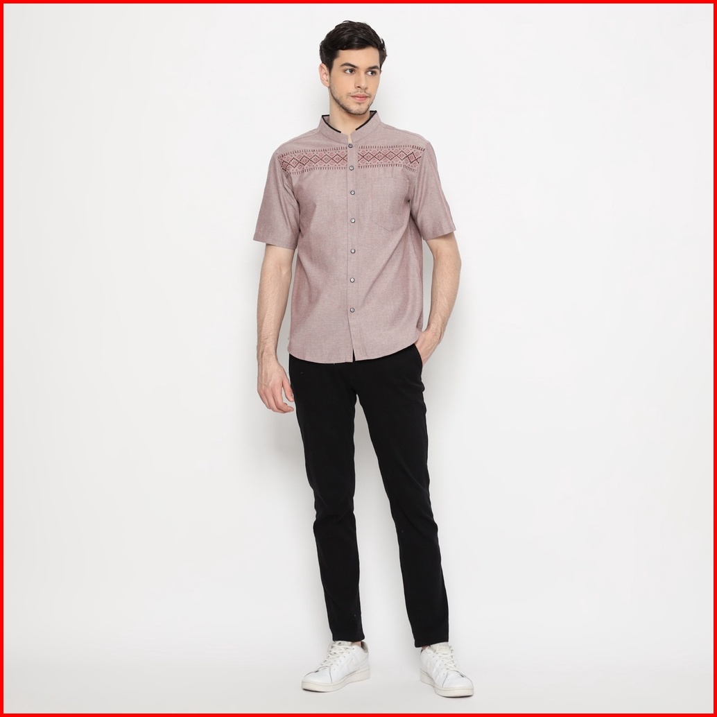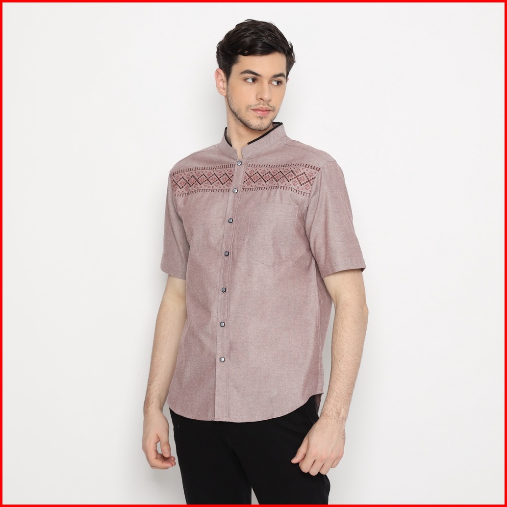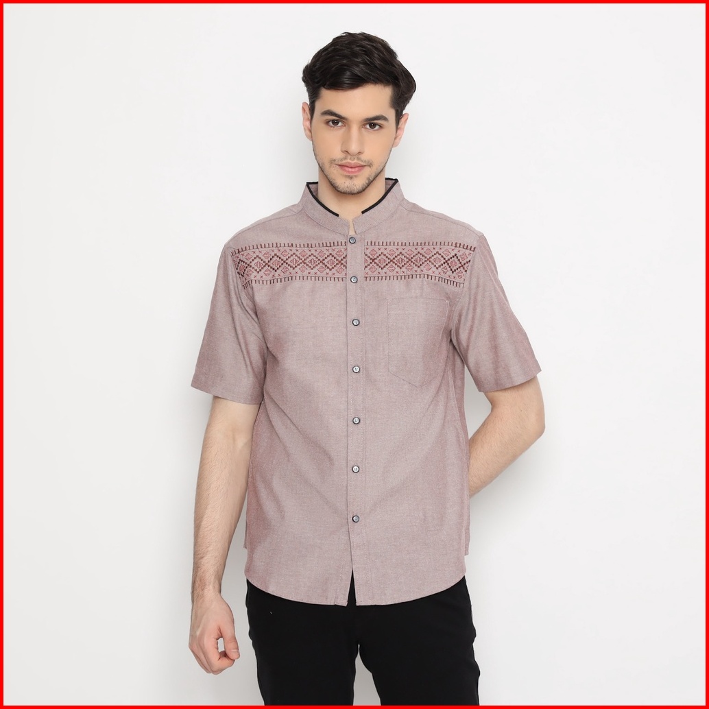 Code Male Kemeja Koko Pria Bordir Premium Maroon Misty Khalid