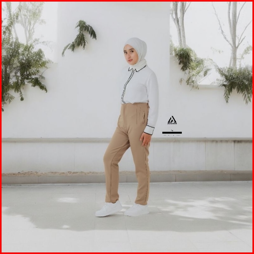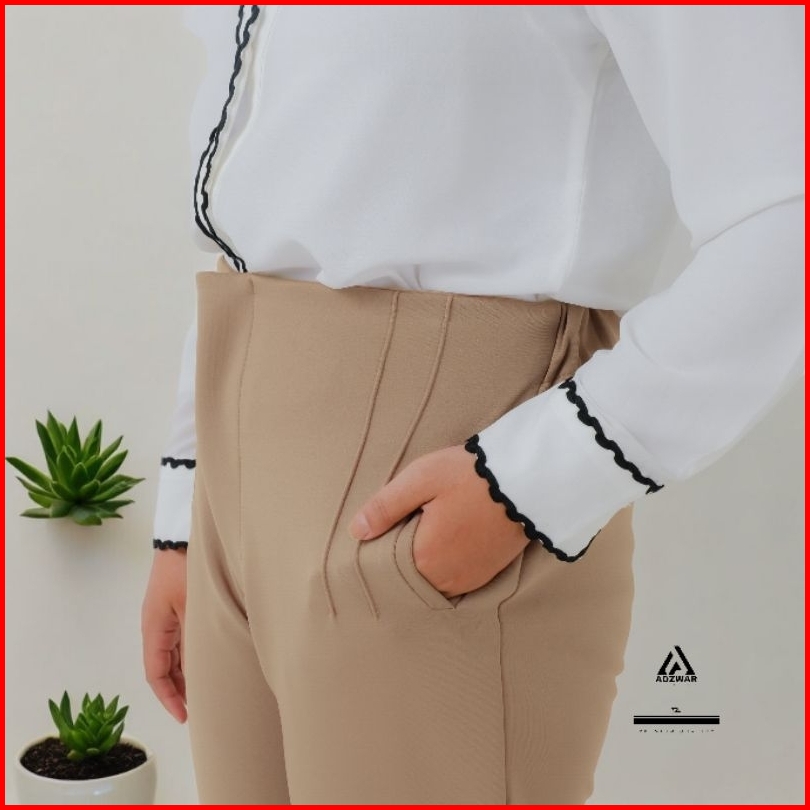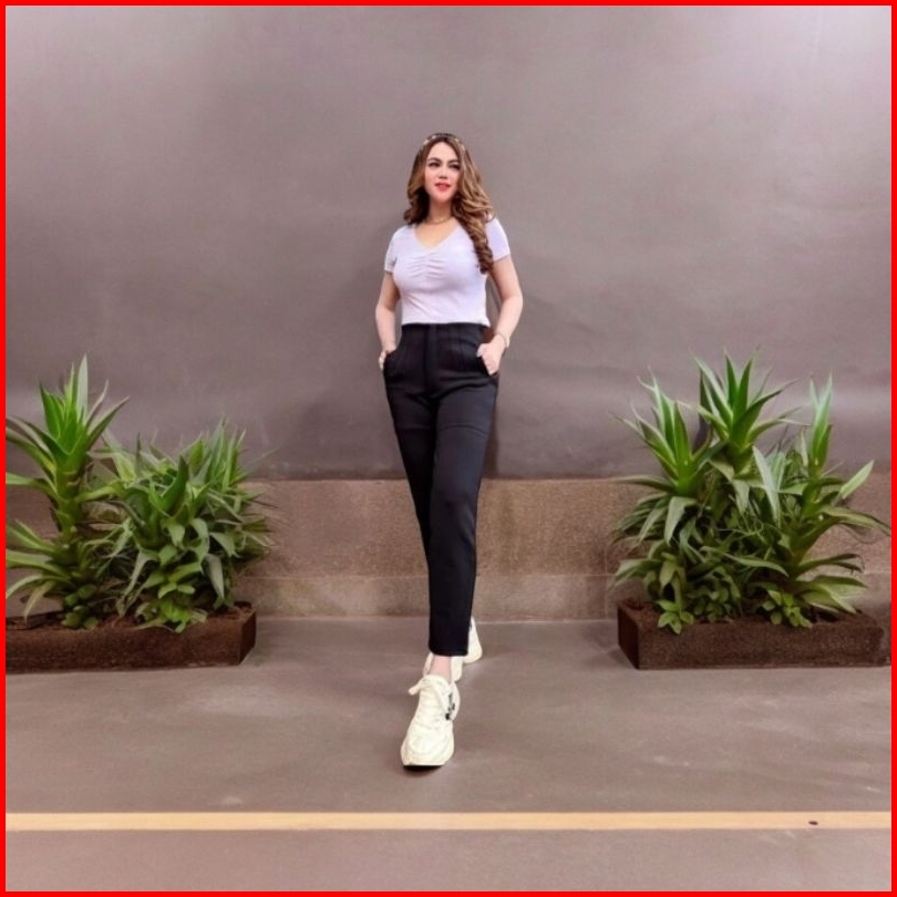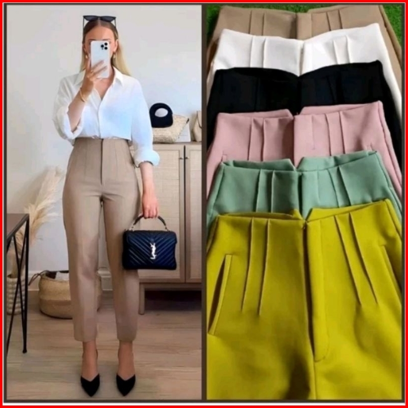 Celana Panjang Pensil Saku Paspol Kerja Wanita Scuba Premium High Waist Kekinian