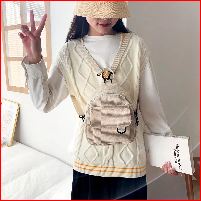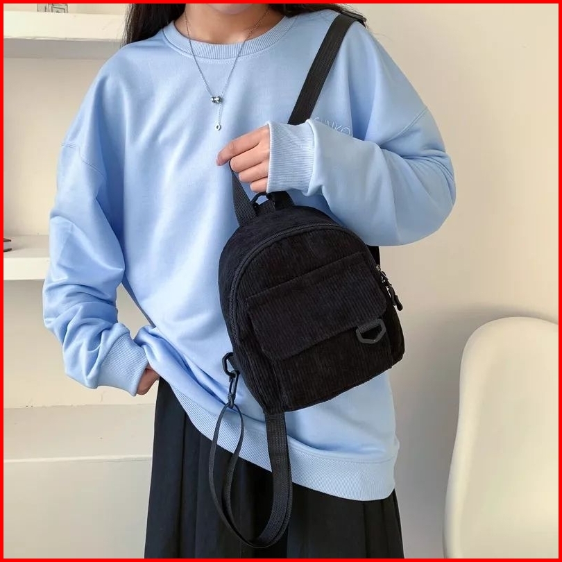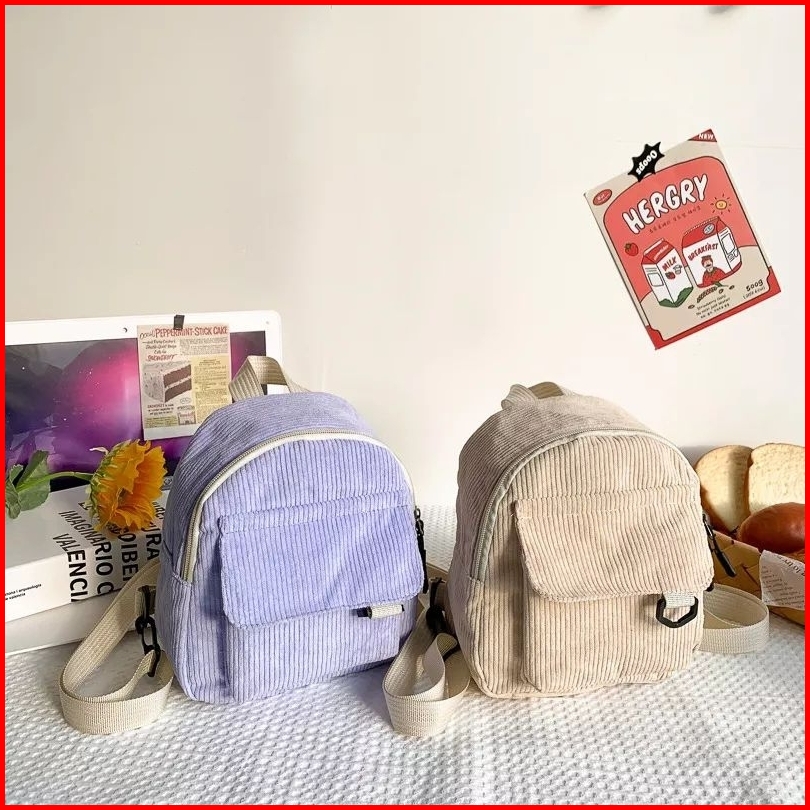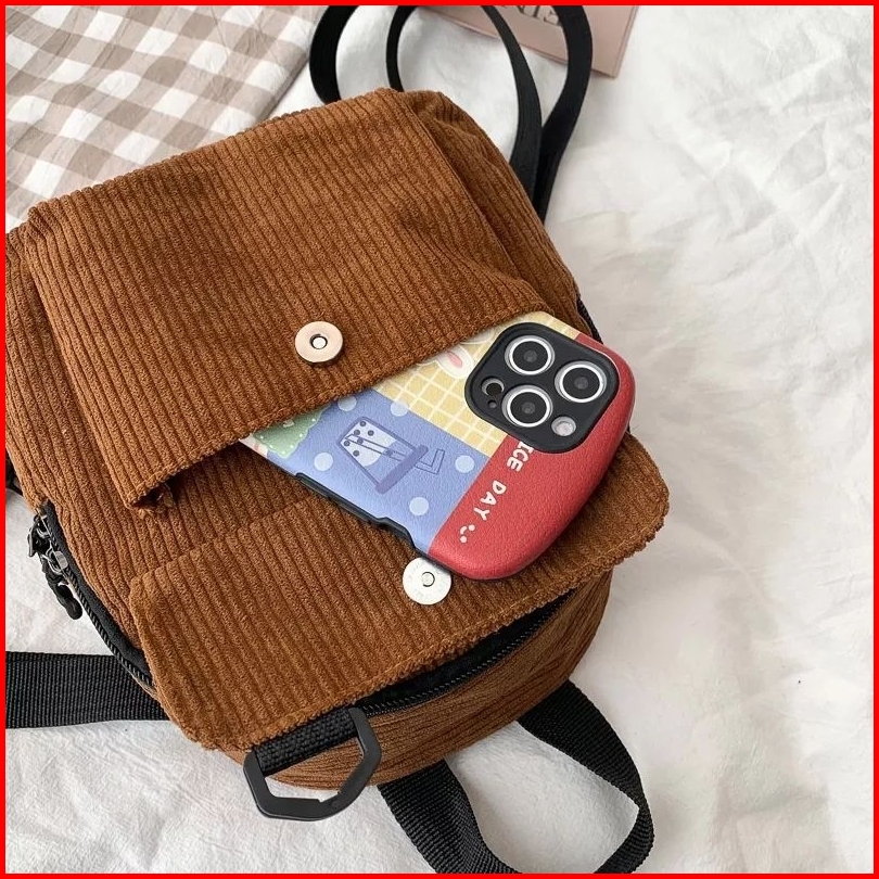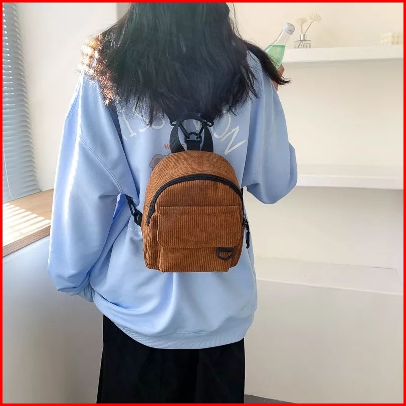 Backpack Mini Corduroy Tas Ransel Kekinian Lucu Kecil Bag Vintage Wanita Korean Aesthetic Style