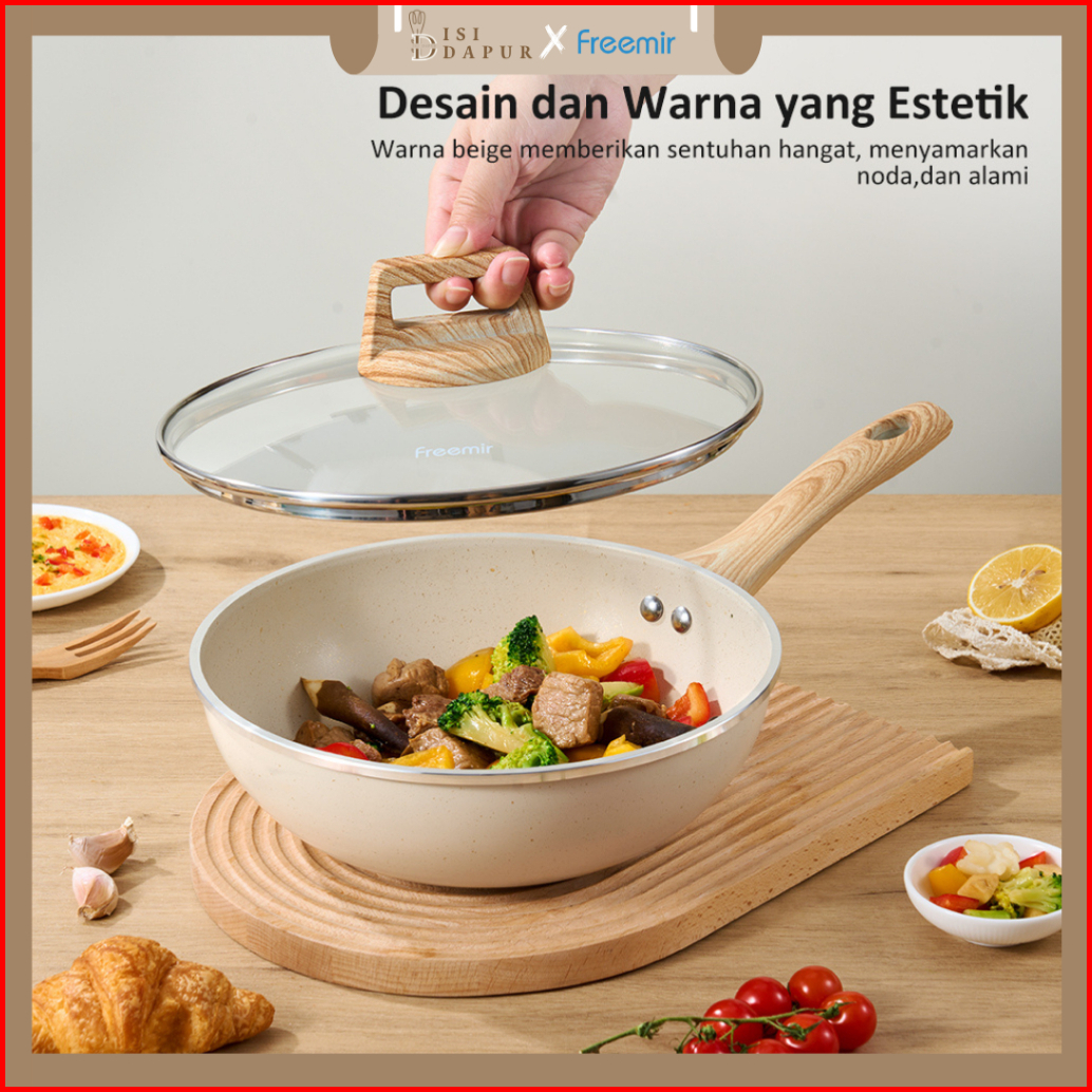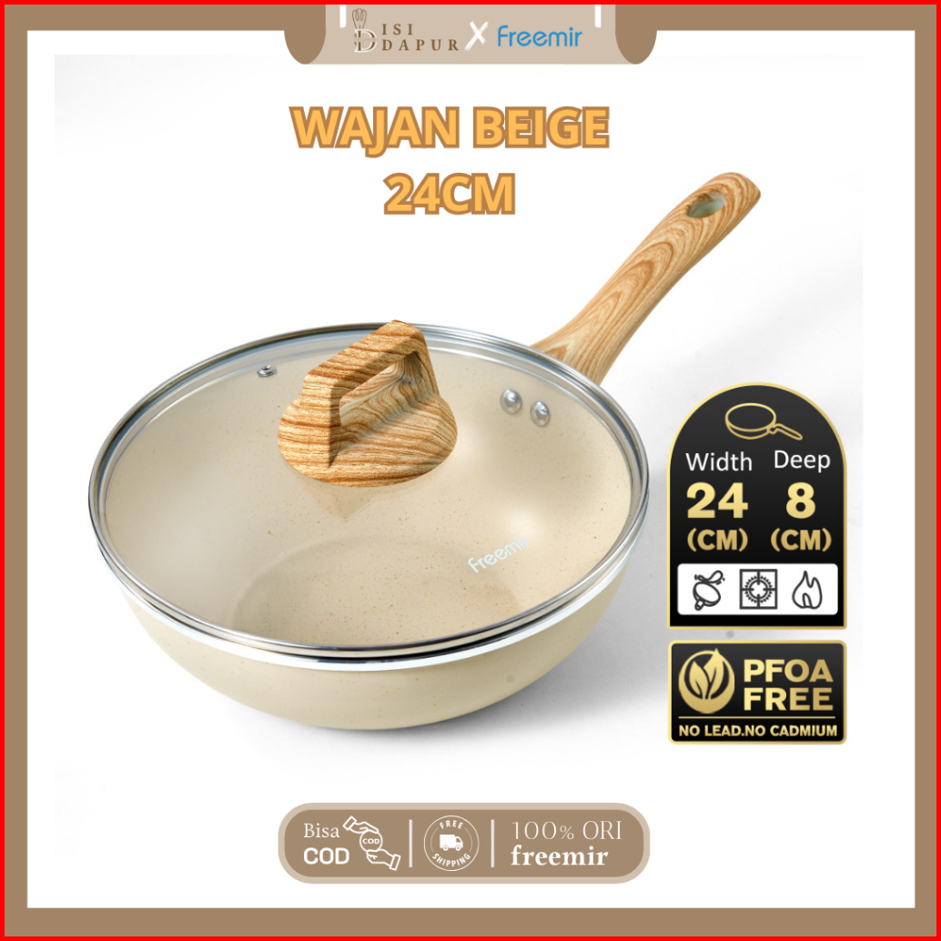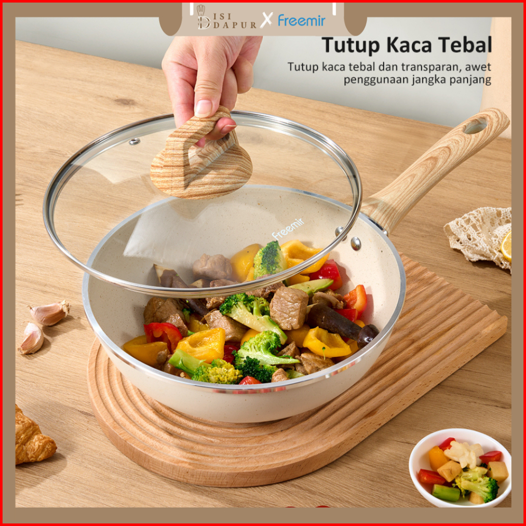 Id Freemir Wajan Gagang 24cm Beige Anti Lengket Multifungsi Tutup Kaca