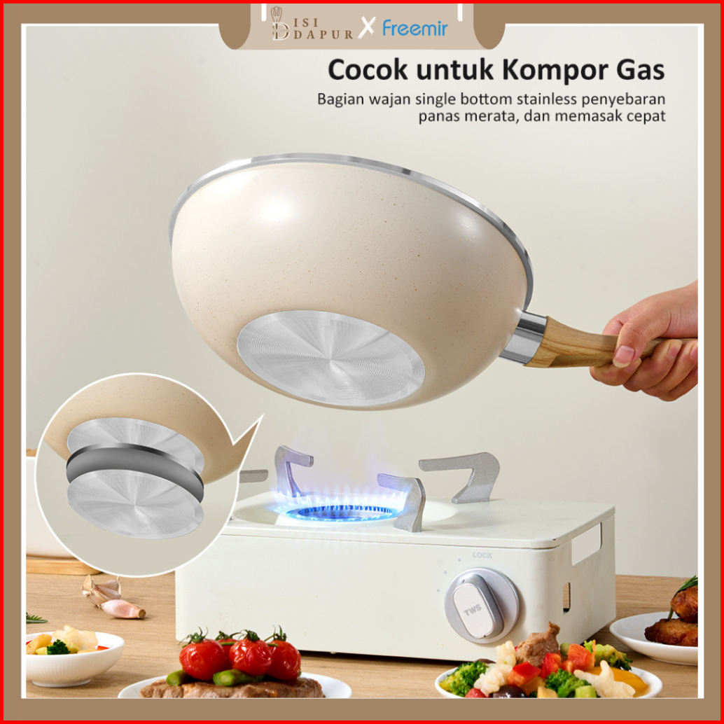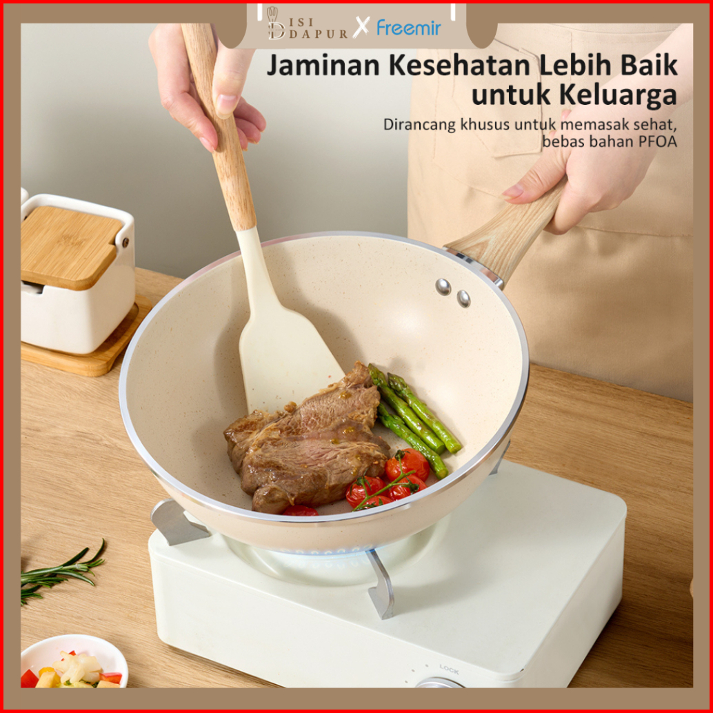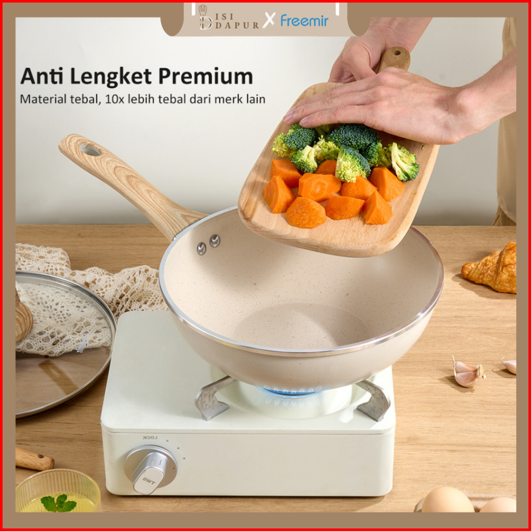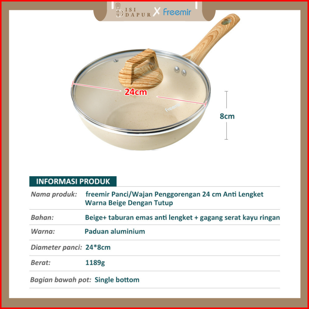 Id Freemir Wajan Gagang 24cm Beige Anti Lengket Multifungsi Tutup Kaca