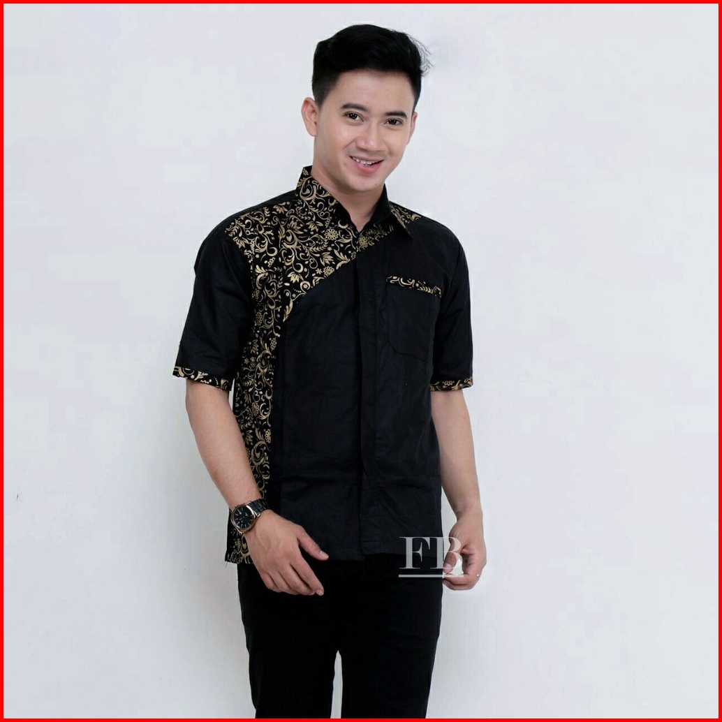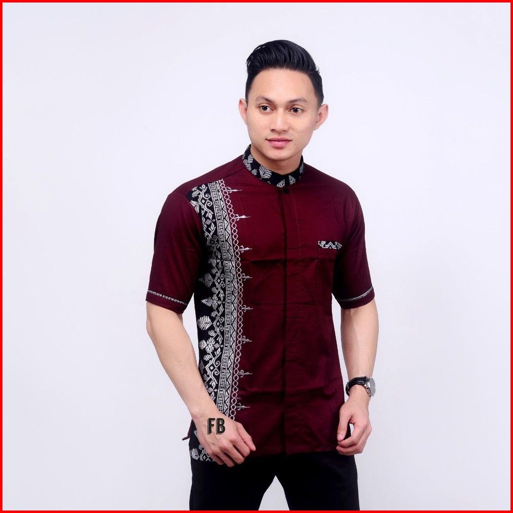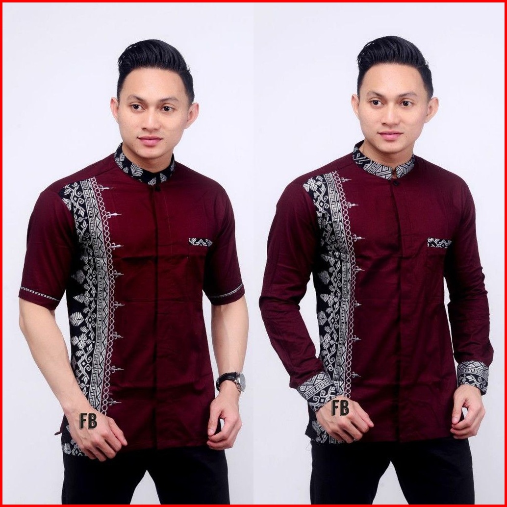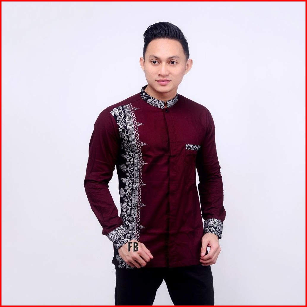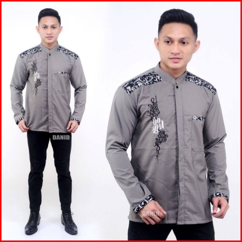 Baju Koko Lengan Panjang Bordir Samping Saku Dada