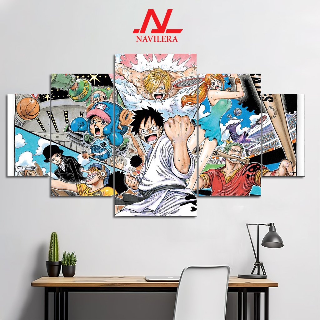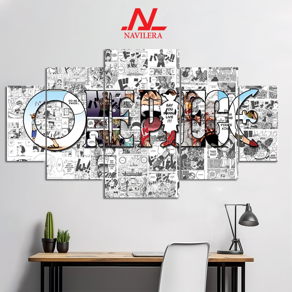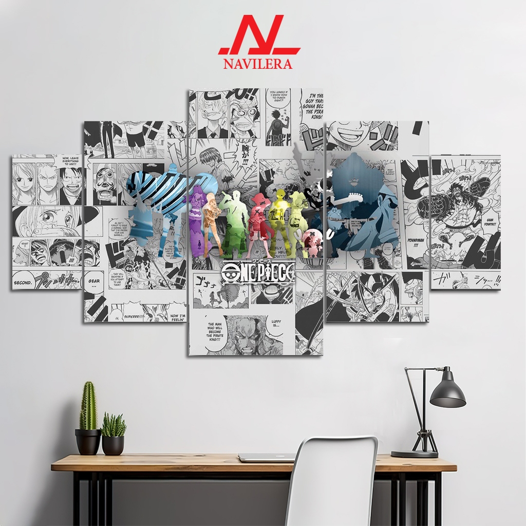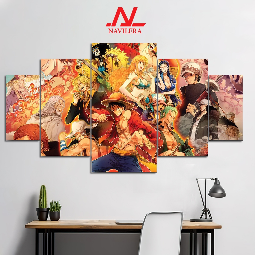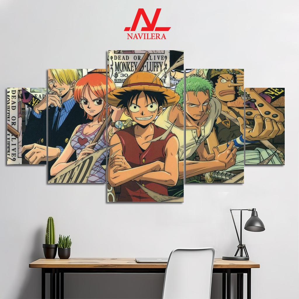 NAVILERA.CO HIASAN DINDING POSTER ANIME 1 SET ONE PIECE LUFFY 5 Pcs POSTER KAYU WALL DECOR