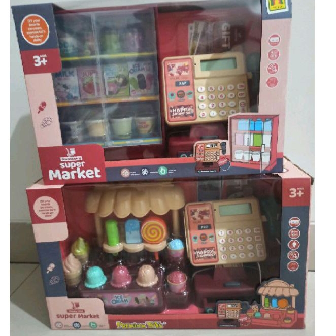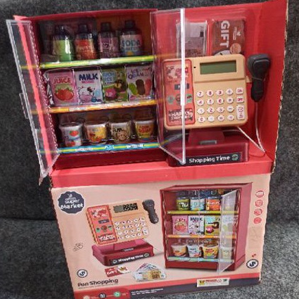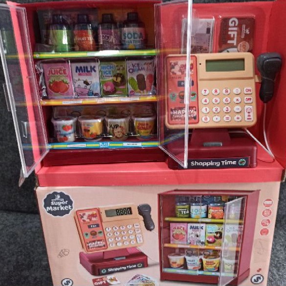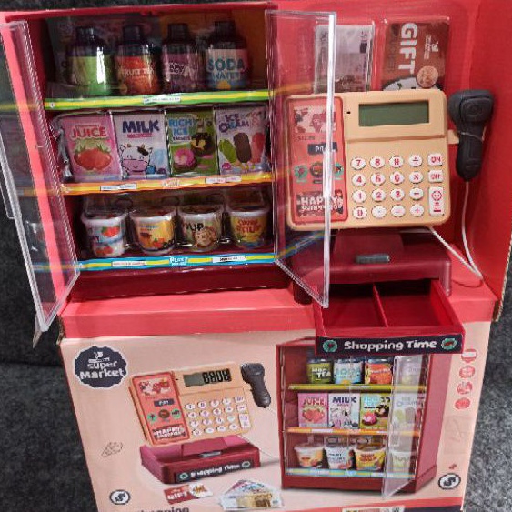 Mainan anak kasir kasiran register happy shopping supermarket with etalase