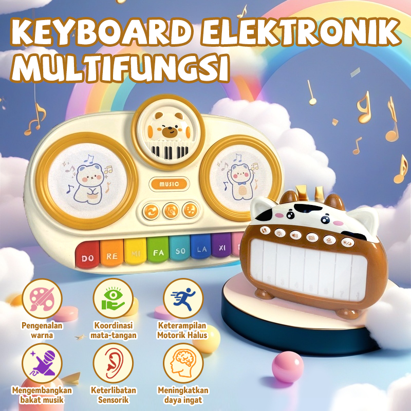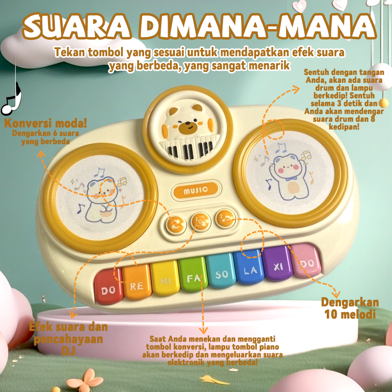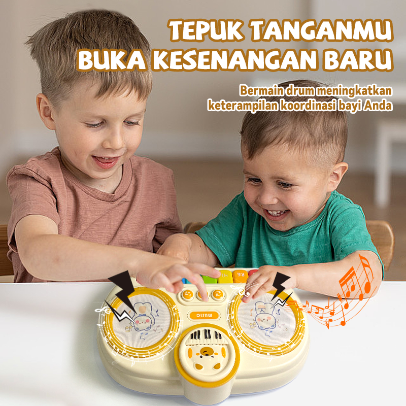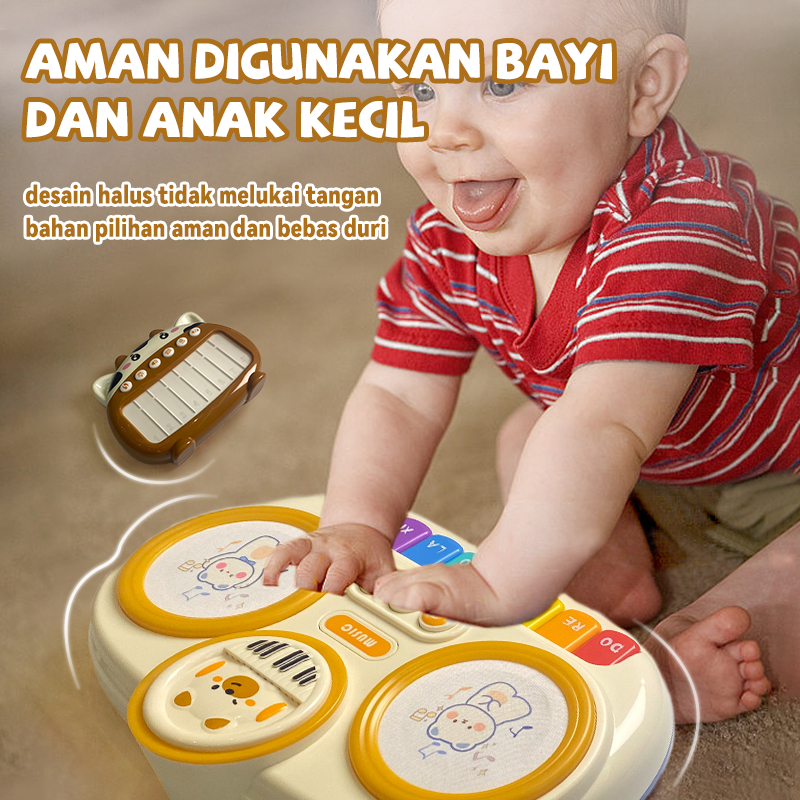 Mainan Musik Anak 2in1 Keyboard Drum Piano Elektronik Dengan Lampu Mainan Alat Musik Edukasi