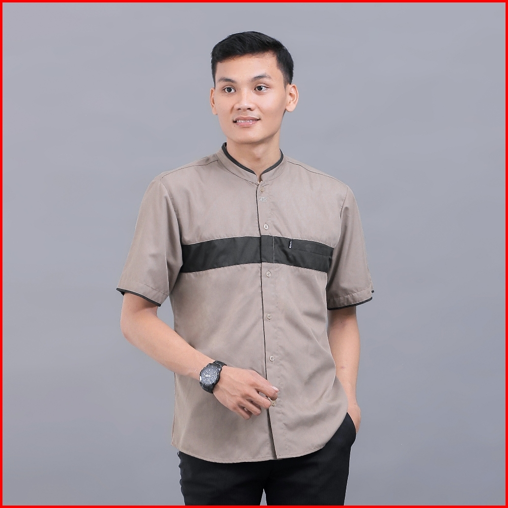 Baju Koko Pria Elrumi Lengan Pendek Motif Hanif Warna Coklat