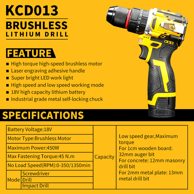 KEELAT KCD013 Brushless Cordless Drill Impact Drill Screw Driver Portable Electric Drill