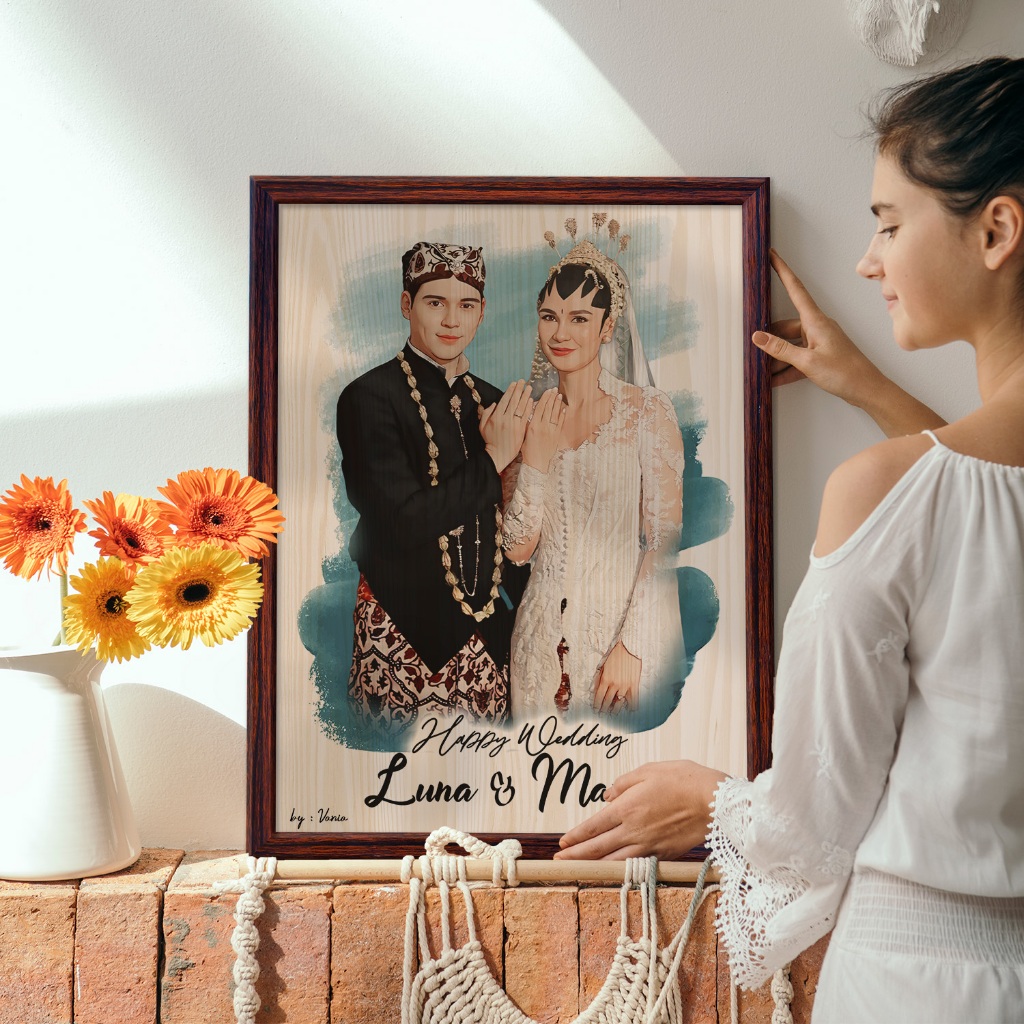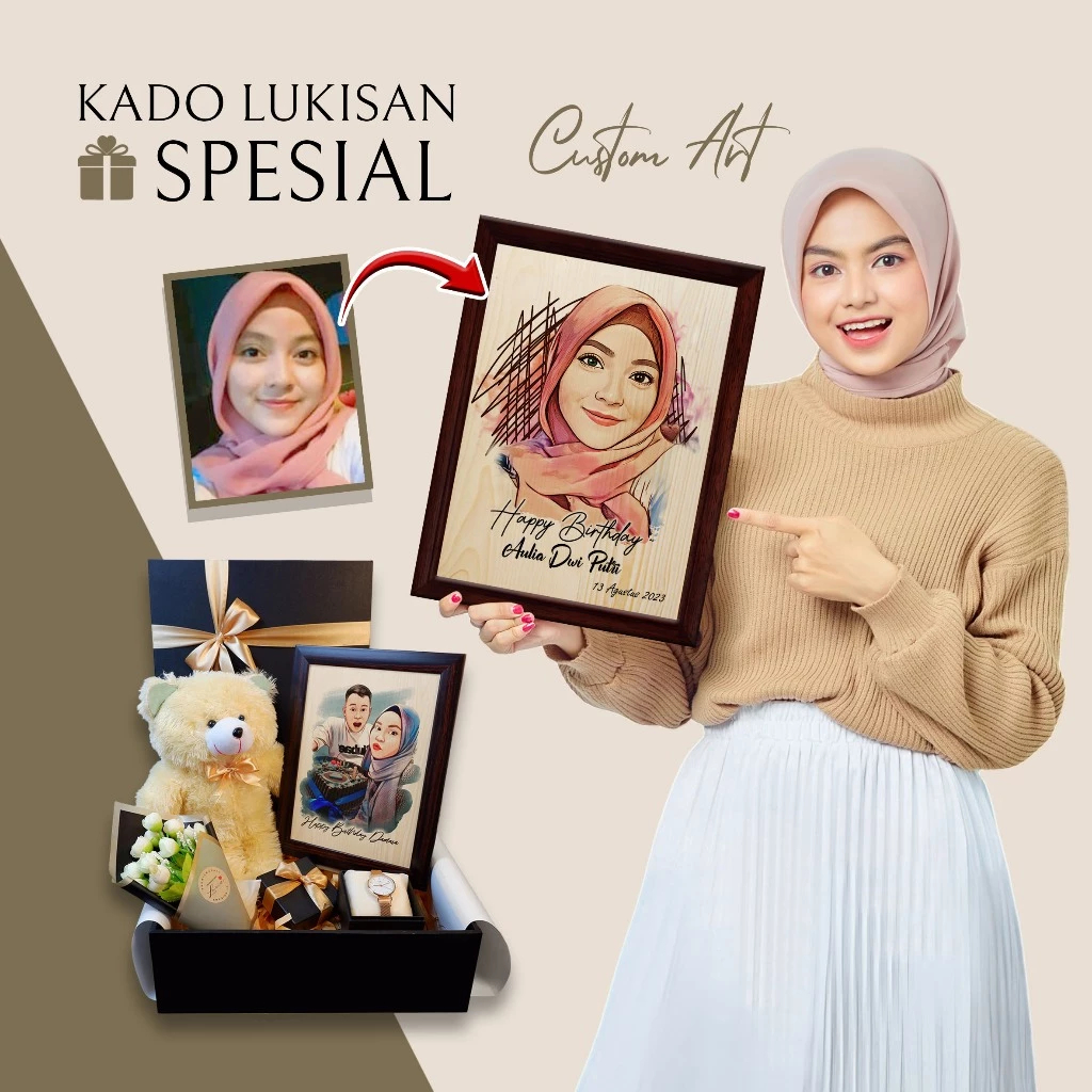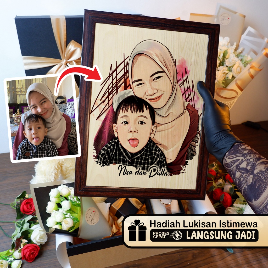 Paket kado Unik Lukisan Mengenang untuk Hadiah Nikahan / ulang Tahun / Wisuda
