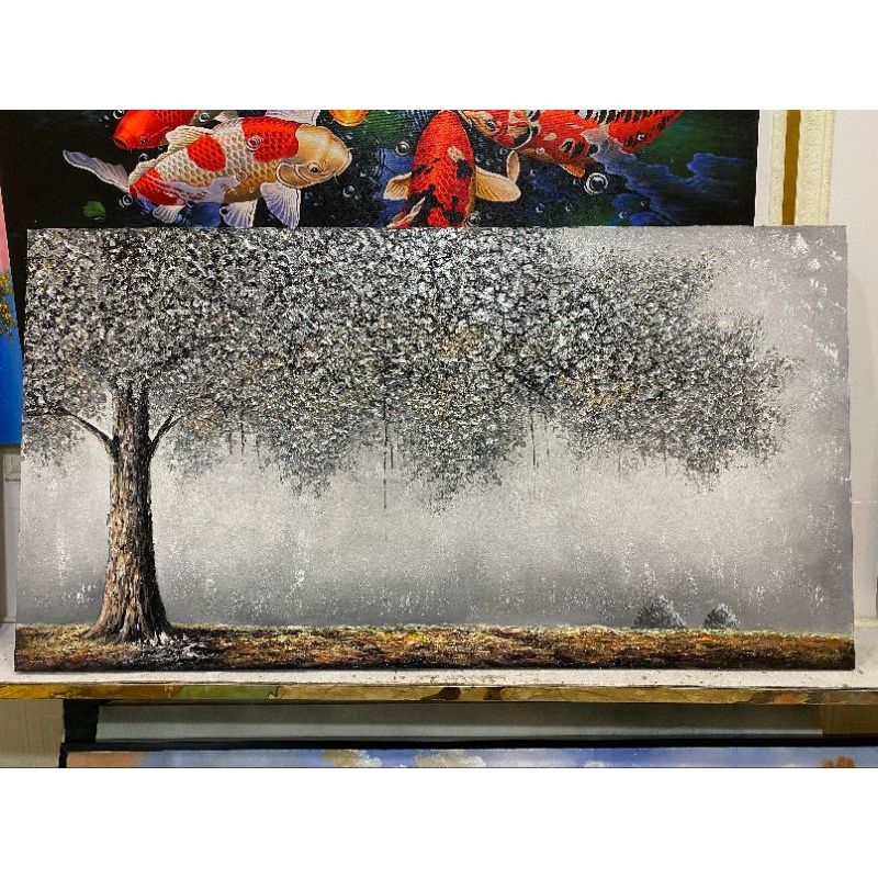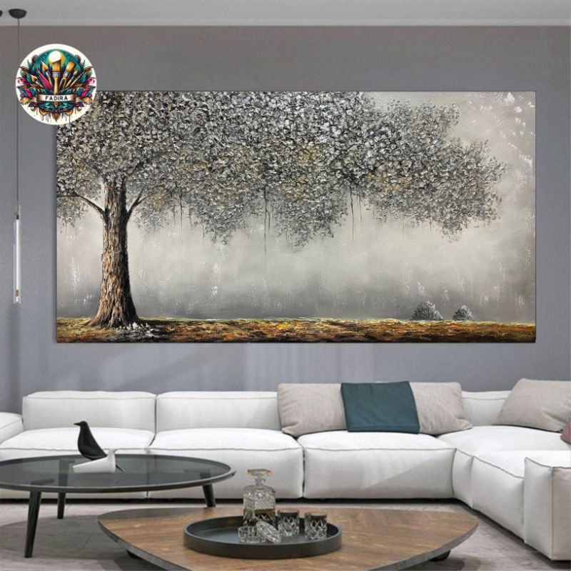 Lukisan dinding ruang tamu pohon silver hiasan dinding modern aesthetic dekorasi art painting