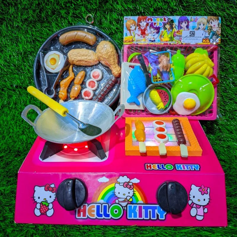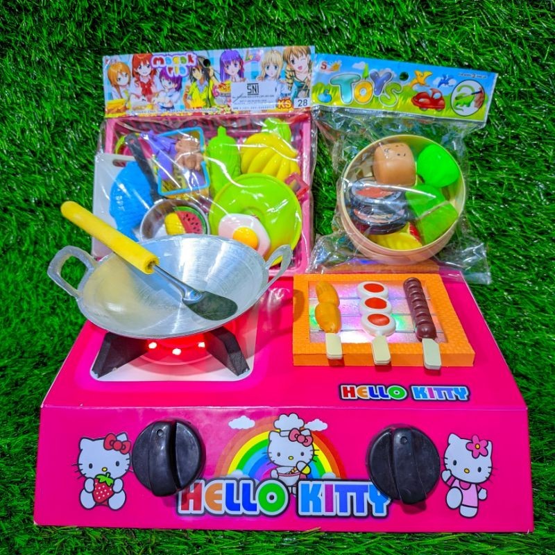 Kompor Mainan Kitchen Set Masak Masakan Anak Bisa Nyala Mixue Hellokitty Miniatur Set Kompor Mini