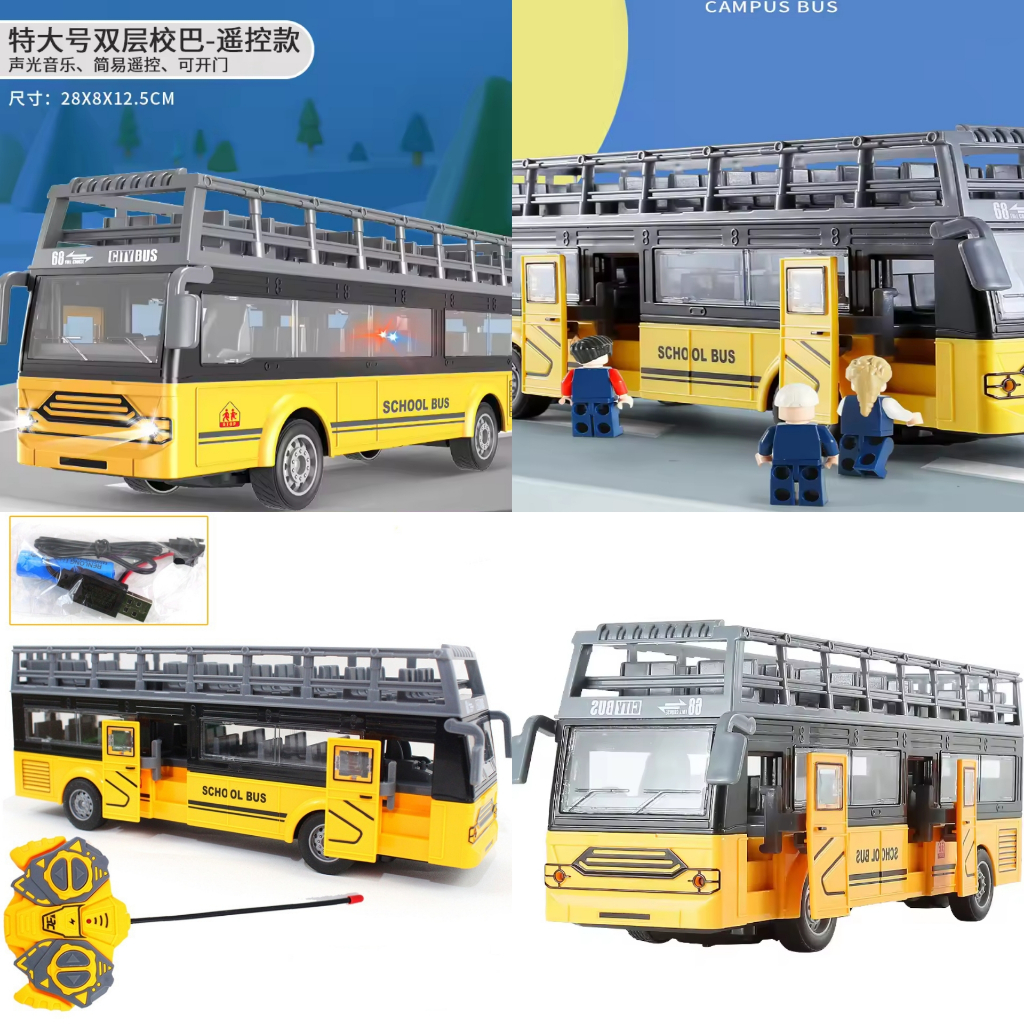 BESAR MOBIL RC SCHOOL BUS SKALA 1:30 (Double Decker Car Mainan Remot Bus Sekolah Remote Control Bis Basuri Telolet Toy
