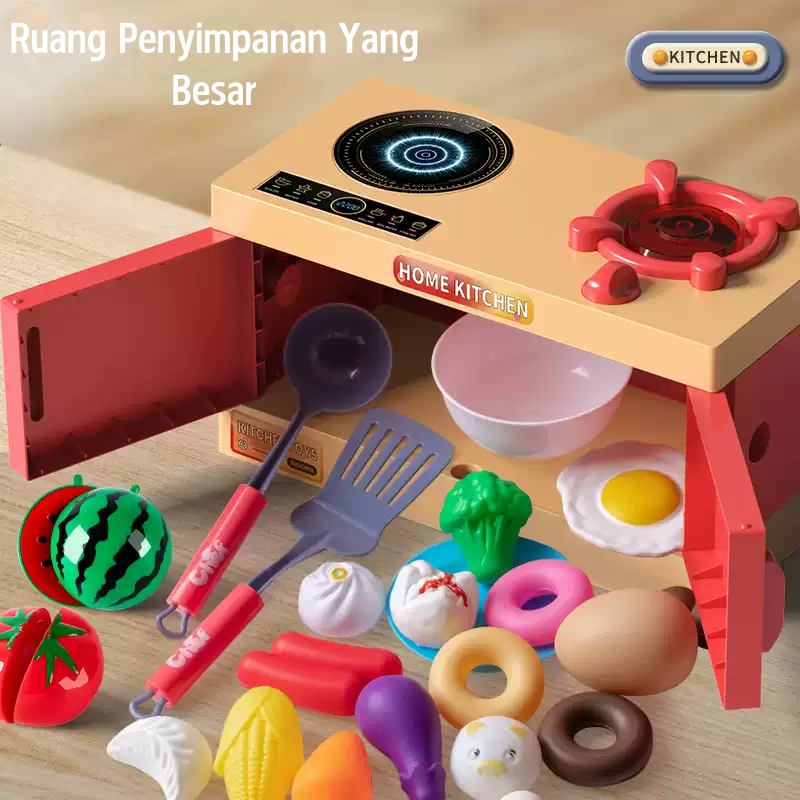 Mainan Masak Masakan Set Mainan Dapur Anak Bermain Rumah Mainan Cooking Set Kompor Menyala