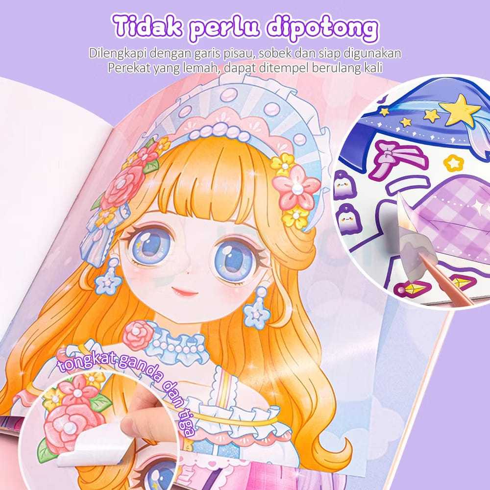Mainan DIY Sticker Make Up Wajah Quiet Book Sticker Edukasi Anak Sticker Dress Up Book Princess Lucu