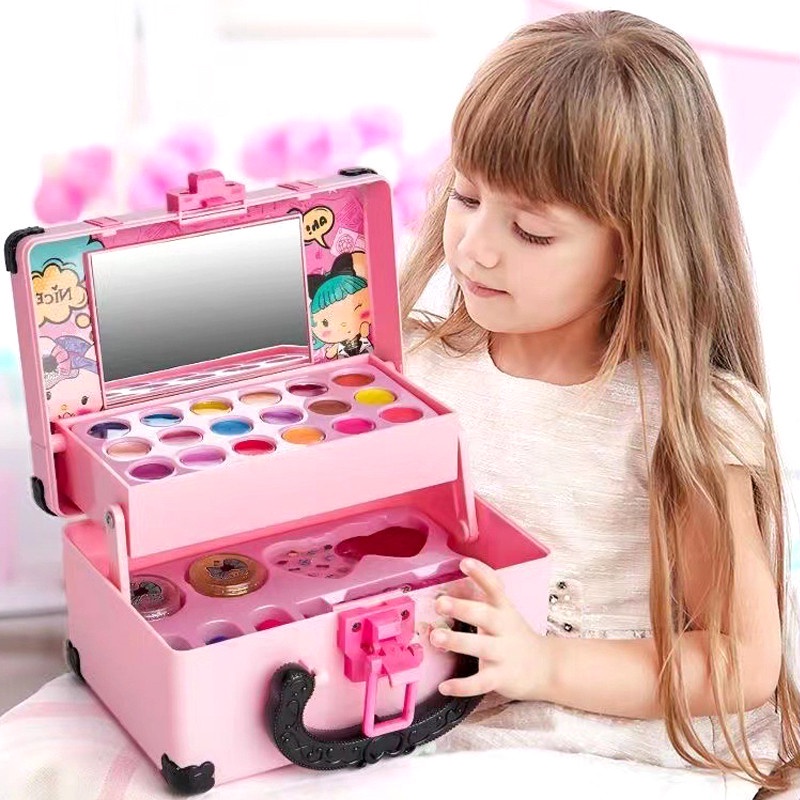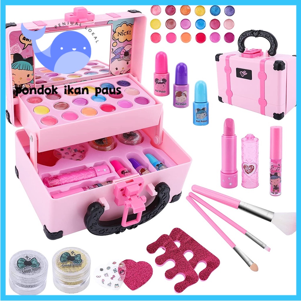 【】32 Pcs Mainan Kosmetik Kecantikan Anak Make Up Anak Anak Kasus Peralatan Tidak Beracun Kotak Make Up untuk Gadis Ul