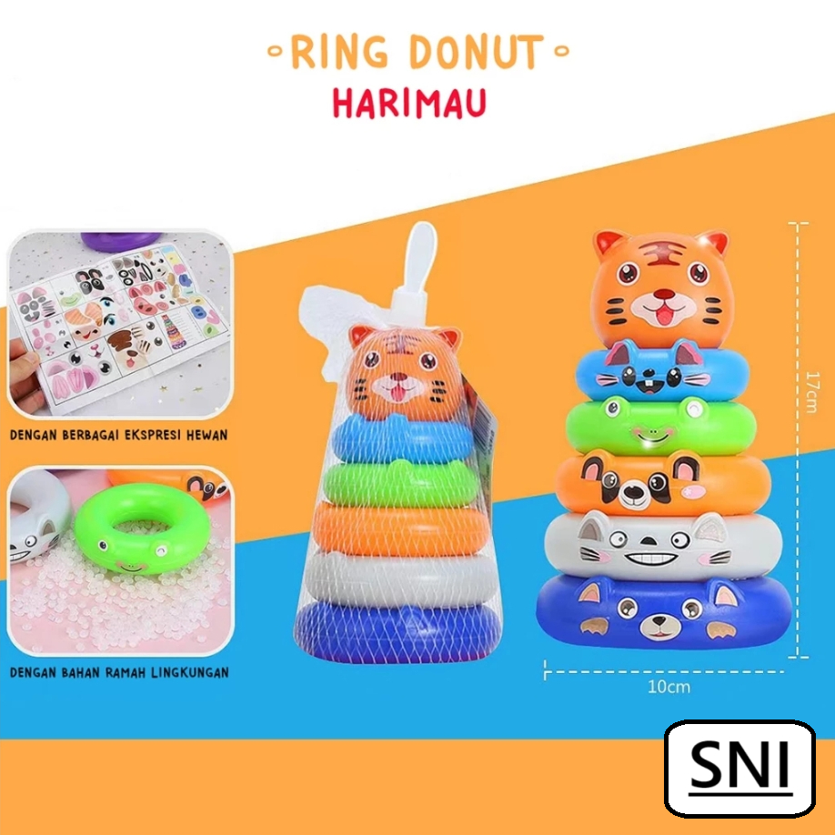Mainan Edukasi Anak Bayi Ring Donat Plastik Bangun Susun Menara Motorik Stacking Tower