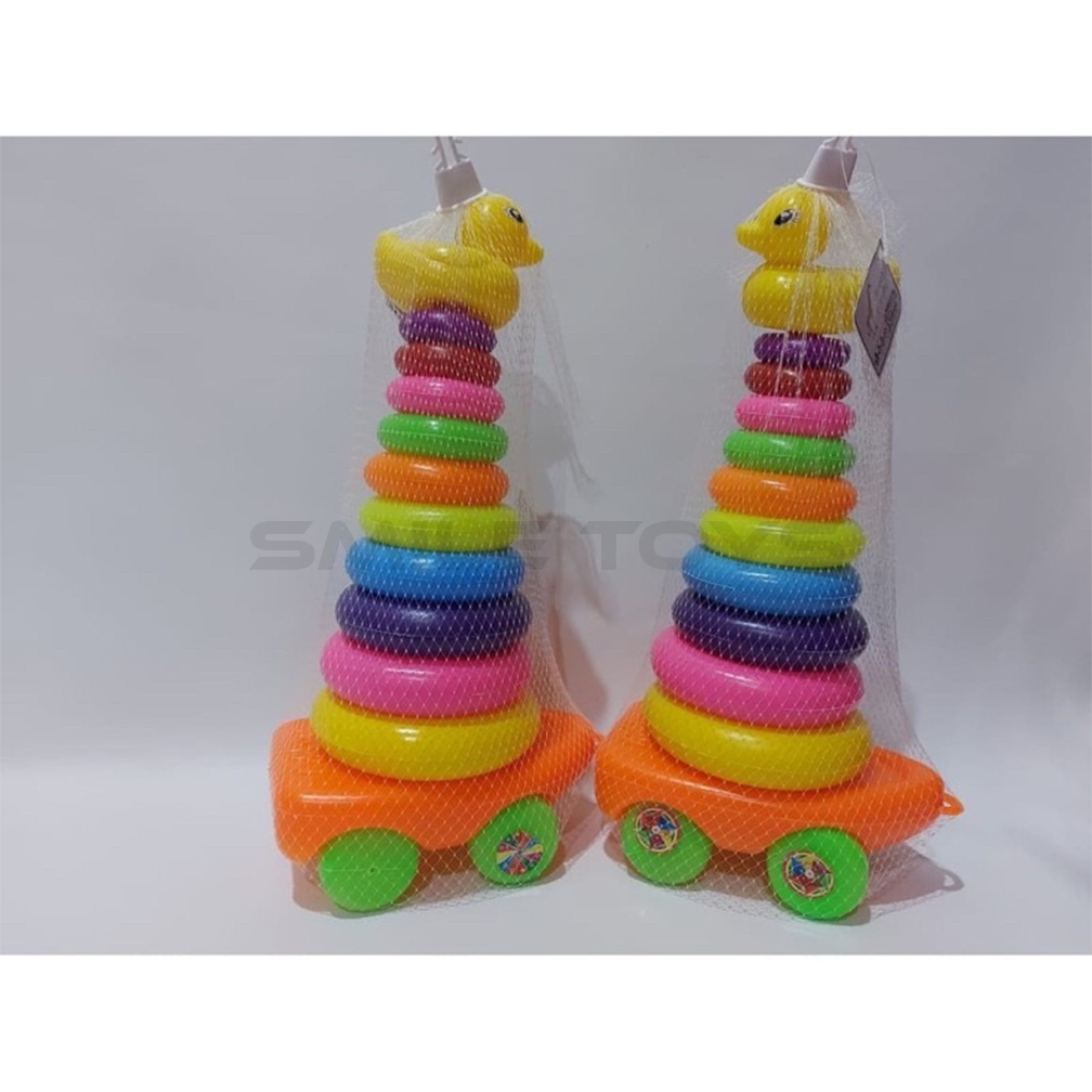 Smile - Mainan Edukasi Anak Ring Donat Susun Roda 4 Ring 10 Ring Plus Bebek