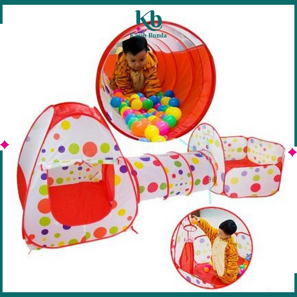 Tenda Terowongan Mainan Anak 4in1 dengan Kolam dan Ring Basket / Mainan Keranjang Mandi Bola Anak / Tenda Anak BUNDA M6