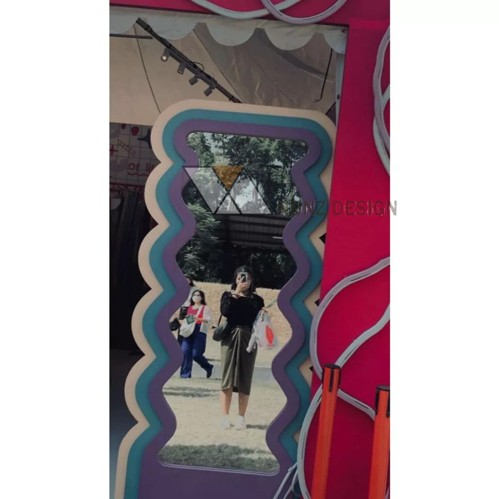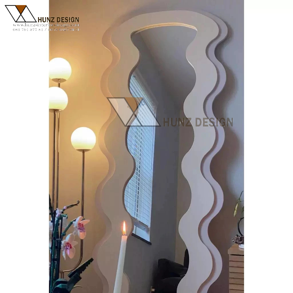 Cermin aesthetic curve viral standing mirror + FREE PACKING KAYU GARANSI 100 PERSEN