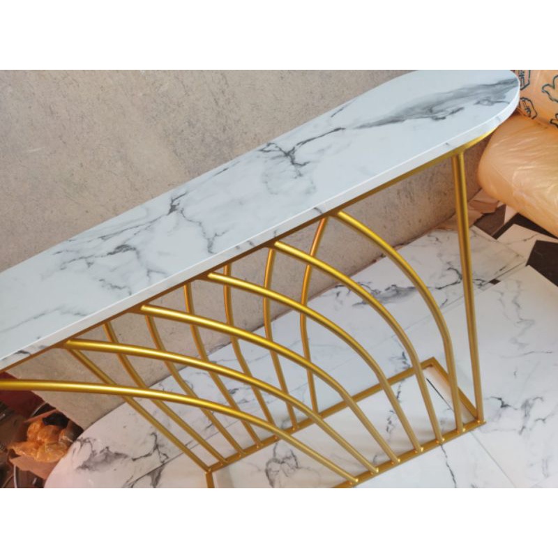 MEJA KONSOL CONSOLE COFFEE TABLE MOTOF MARMER MARBLE PIPA MURAH PROMO GOL& EM45 CUSTOM FOYER MINIMALIS ELEGANT
