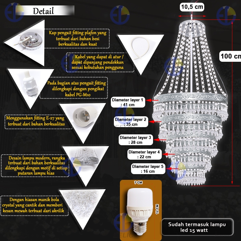 EELIC LHG-281 Lampu hias gantung crystal 5 layer memberi kesan elegant dan mewah desain interior modern