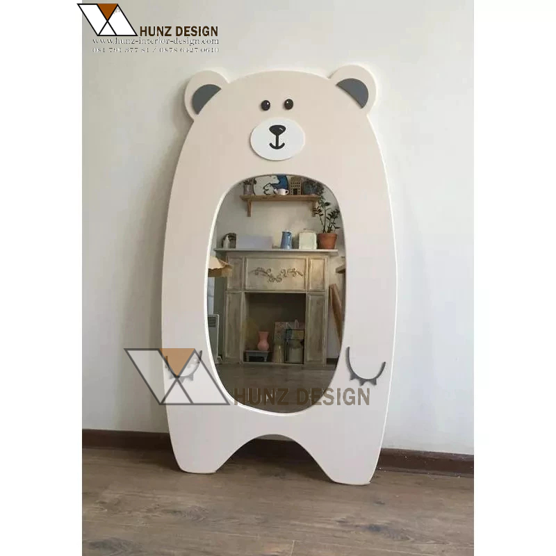 cermin aestetic/cermin led/cermin standing/ cermin karakter/cermin beruang/Cermin astetic dengan background lampu led/cermin kamar