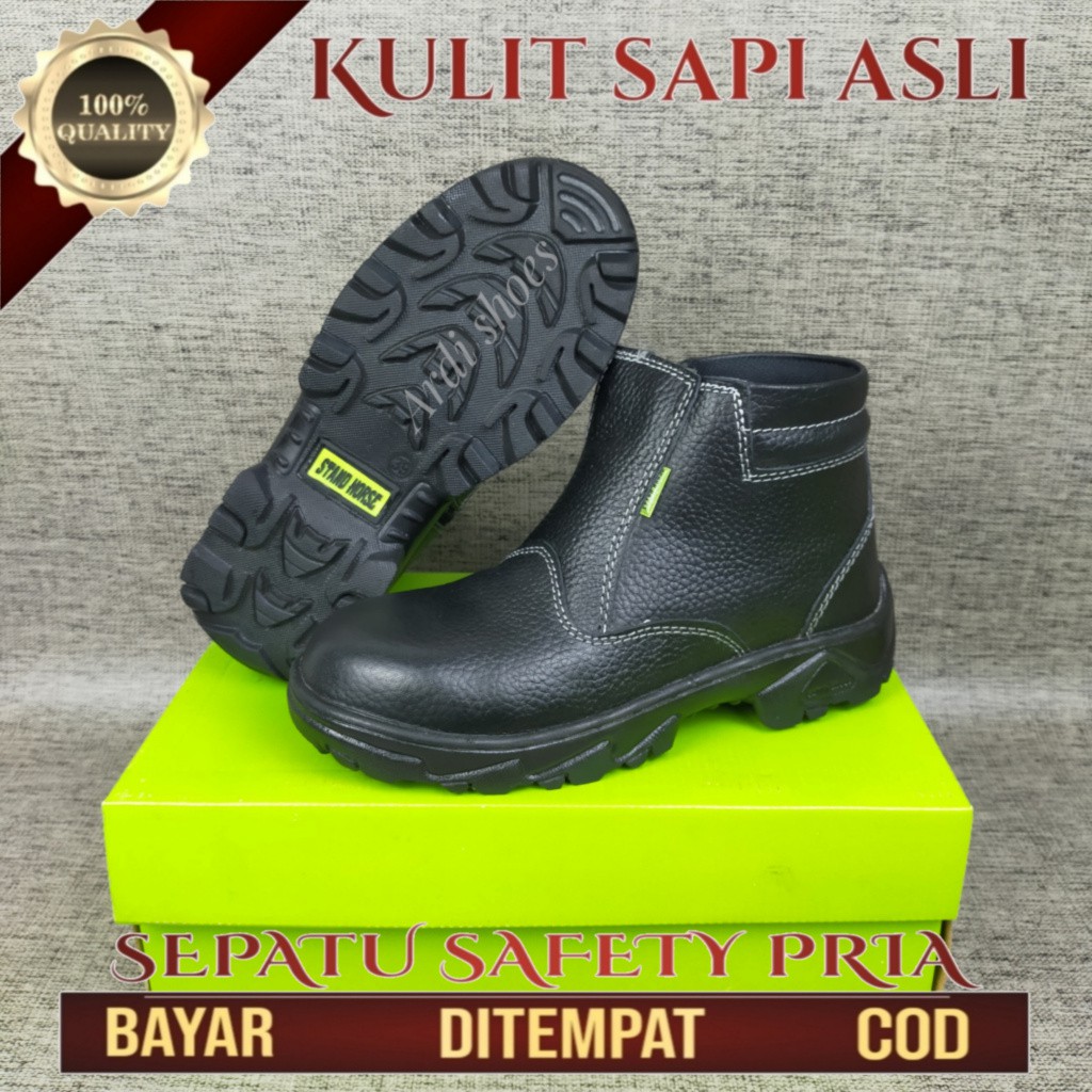 Sepatu Safety Pria Boot Sepatu Septi Kulit Asli Sepatu Cowok Sepatu Proyek Dan Lapangan Stand Horse