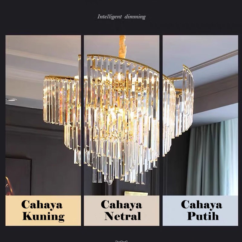 ❣️Garansi&3Warna❣️Lampu Gantung Kristal K9 60/80cm Mewah Modern Chandelier Ruang Tamu Kamar Tidur Meja Makan Lampu Hias