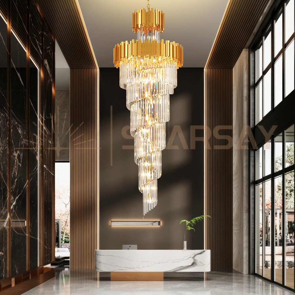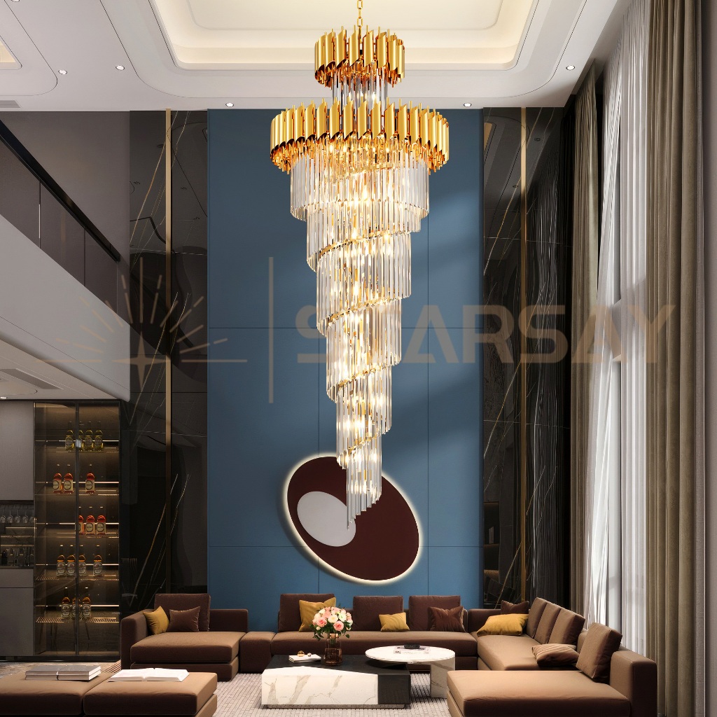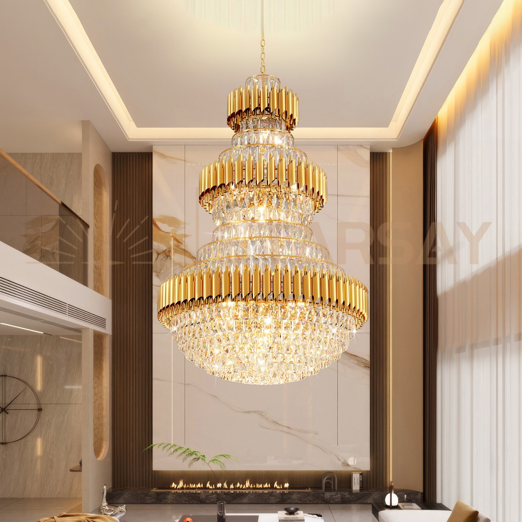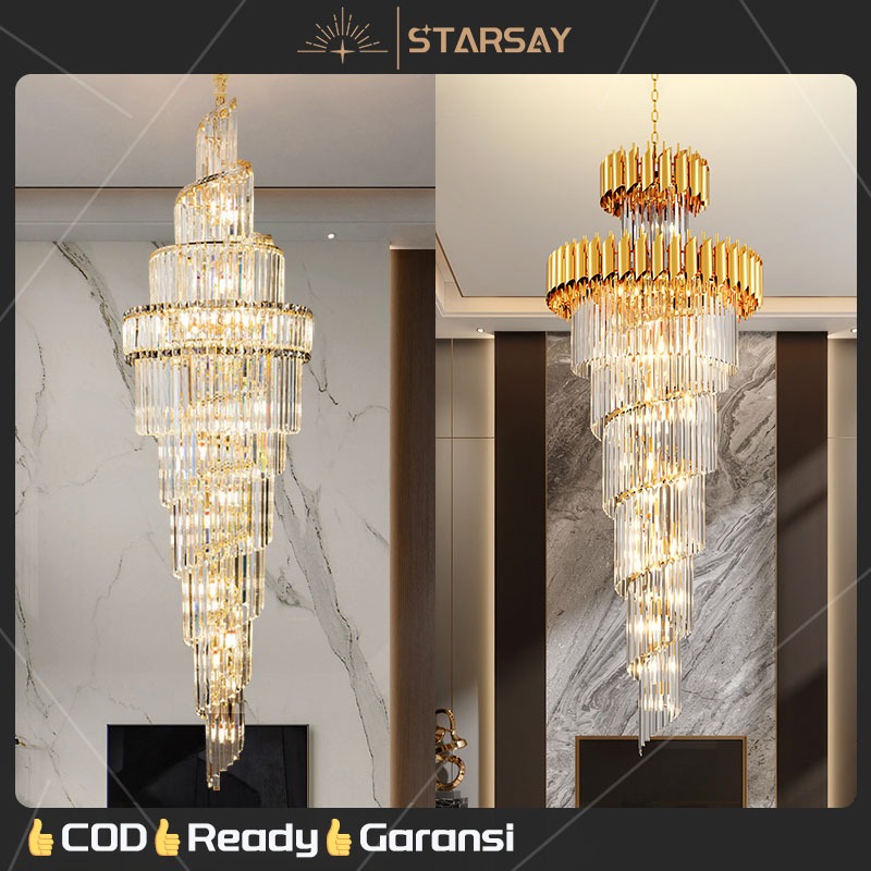 ⭐Garansi⭐Kristal Lampu Hias Gantung 60180/80260cm Double Layer Modern 3 Warna Mewah Ruang Tamu Ruang Vila Hotel Pernikahan Lampu Hias
