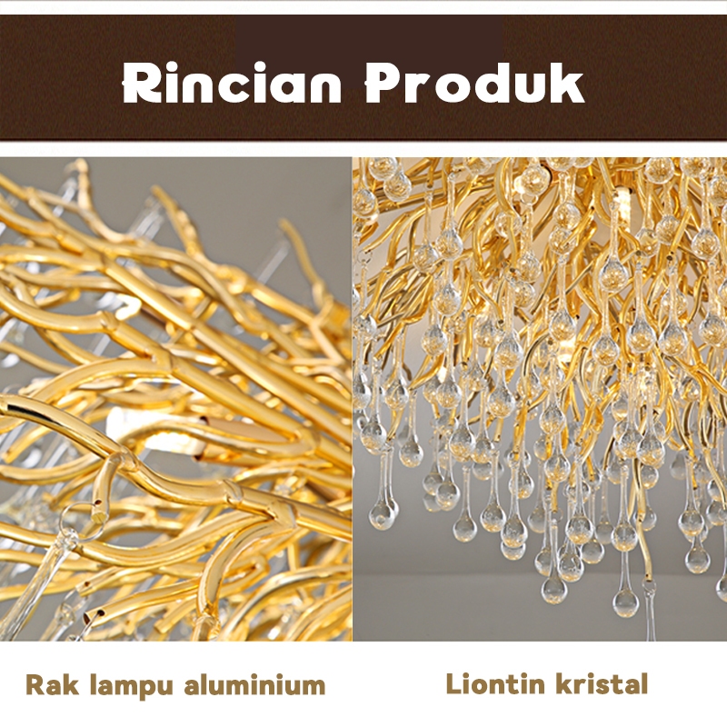 ✨Cahaya Mewah✨Lampu Gantung Kristal Ruang Tamu Lampu Hias Gantung Kristal Liontin Lampu Hias Plafon Kristal Mewah Termasuk G9 Bohlam